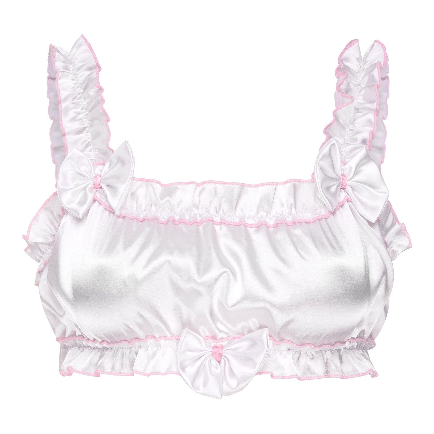 Satini Sissy Frilly Ruffled Fitted Silky Satin Lingerie Bralette (White, S)