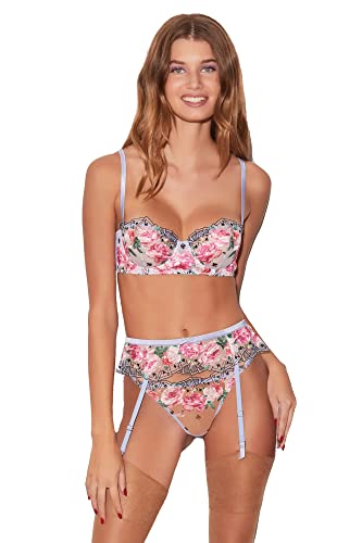 FLEUR DU MAL Card Embroidery Garter Belt, Pastel Blue, S