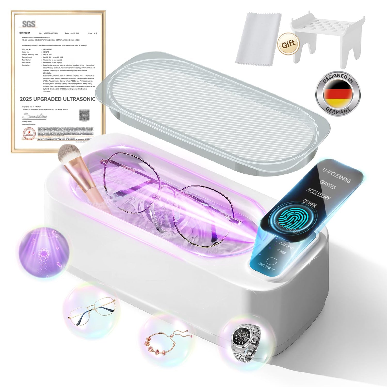 VCNFPRO 5.0 AI Upgraded Ultrasonic Jewelry Cleaner【Top1 200W German Motor】【SGS-Certified 55KHz Ultrasonic & Dual Tech】 4 Smart Modes for Jewelry, Eyeglasses, Rings, Watch Straps, Razors