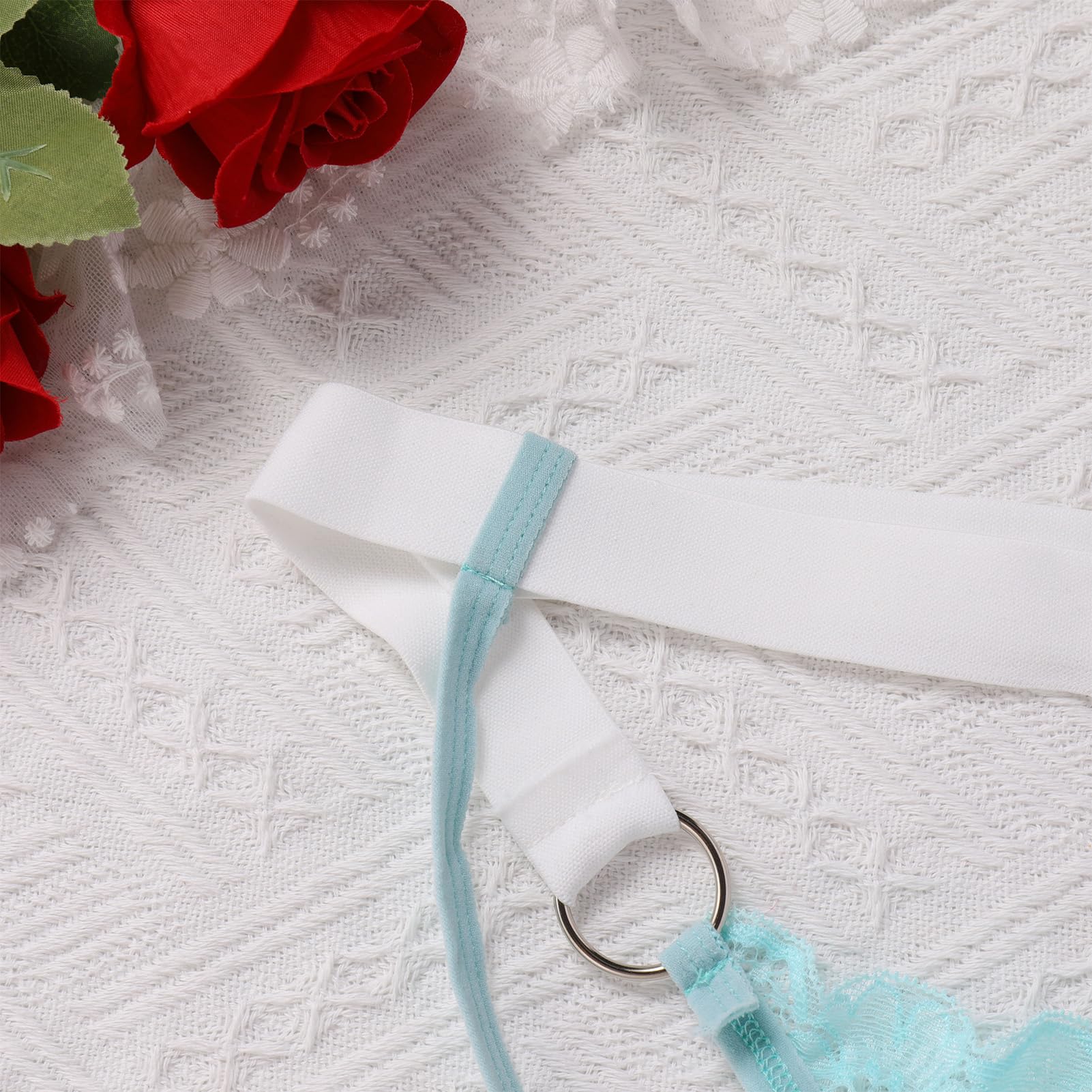 ABAFIP Men's Lace Thong Underwear Low Waist Sissy Pouch G-String Panties Crossdressing Lingerie Light Blue Medium