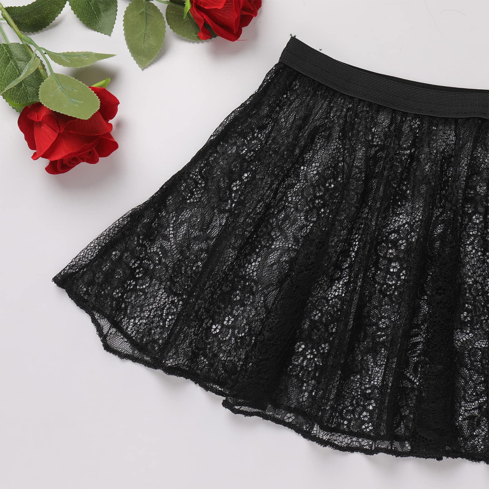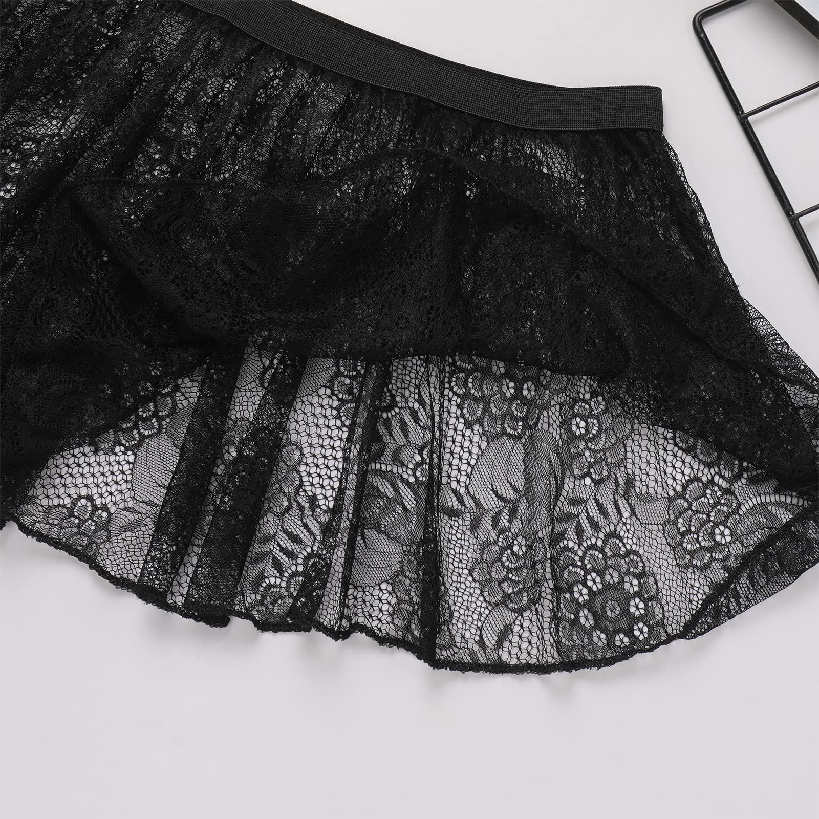 ABAFIP Sissy Skirts for Men Crossdressing Lingerie Sheer Lace Floral Flared Pleated Micro Mini Skirt Nightwear Underwear Black One Size