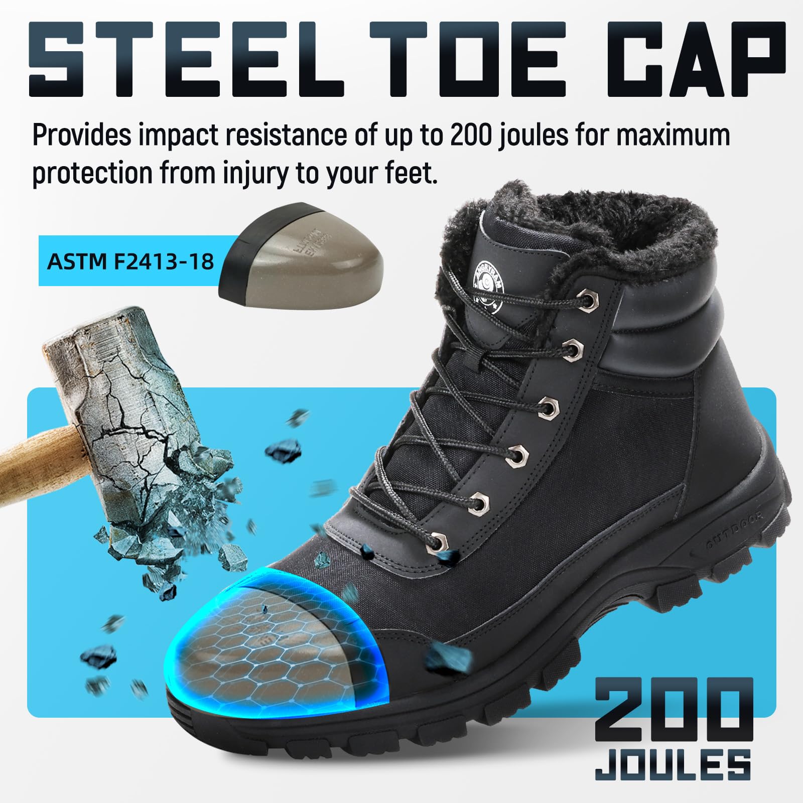 ANGRYRAM Winter Steel Toe Boots for Men Women Comfortable Warm Faux Fur Slip Resistant Snow Work Boots