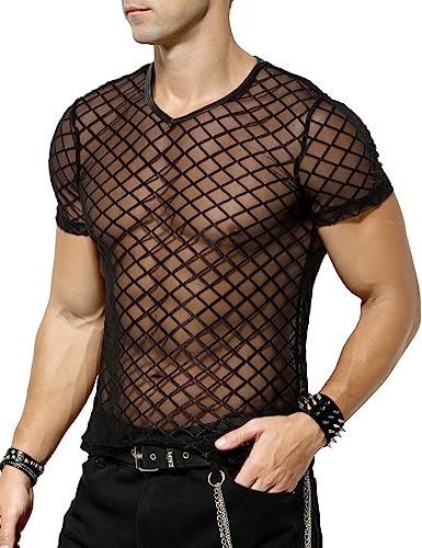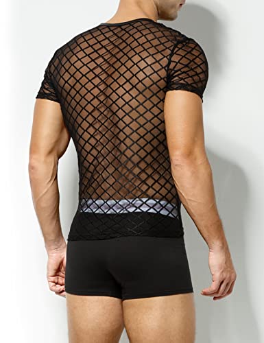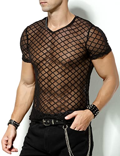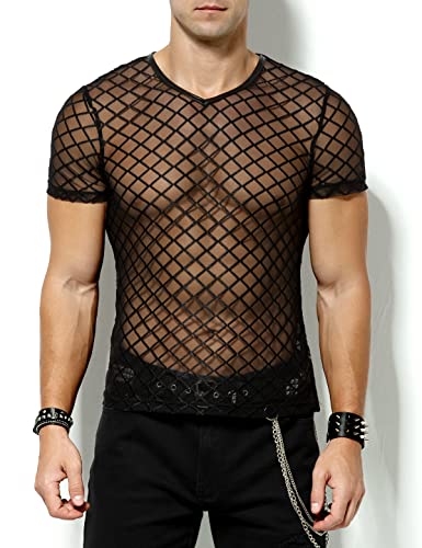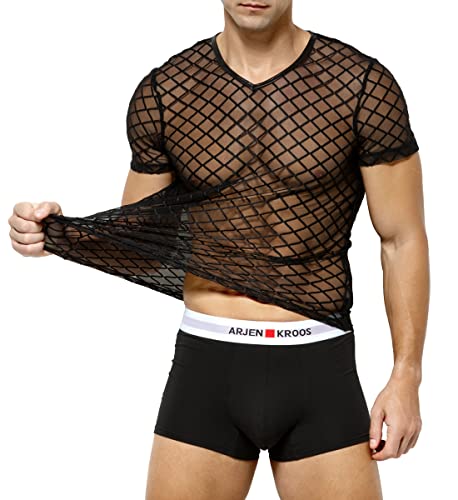 Arjen Kroos Men's Sexy See Through T Shirt Mesh Fishnet Undershirts Transparent Shirt