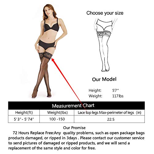 Details: Product Description: Shimmery ultra-sheer lace top thigh high stockings make your legs dazzle. The subtle sheen reflects the light with your every move. Lace top with stay-up silicone adds a feminine touch. No need to attach a garter. You'll feel truly special when you wear this shimmers ultra-sheer lace top thigh highs. 100% brand new and good quality, 15D thickness for spring, summer and fall. NOTE: Wash it by hand in 30-degree water, hang to dry, prohibit bleaching and iron.