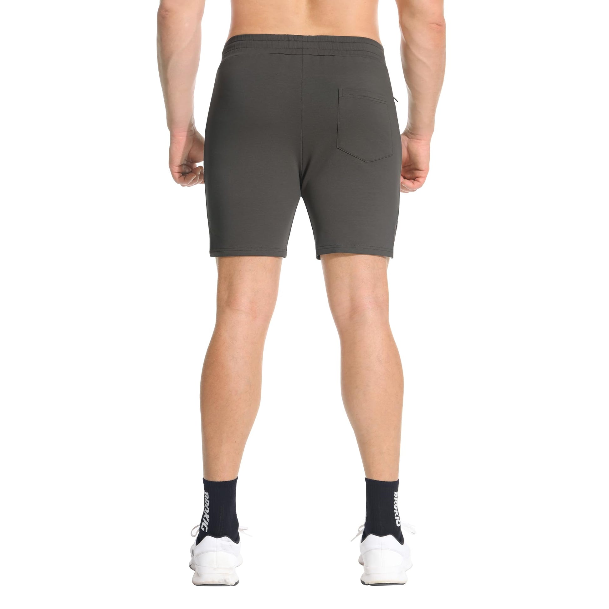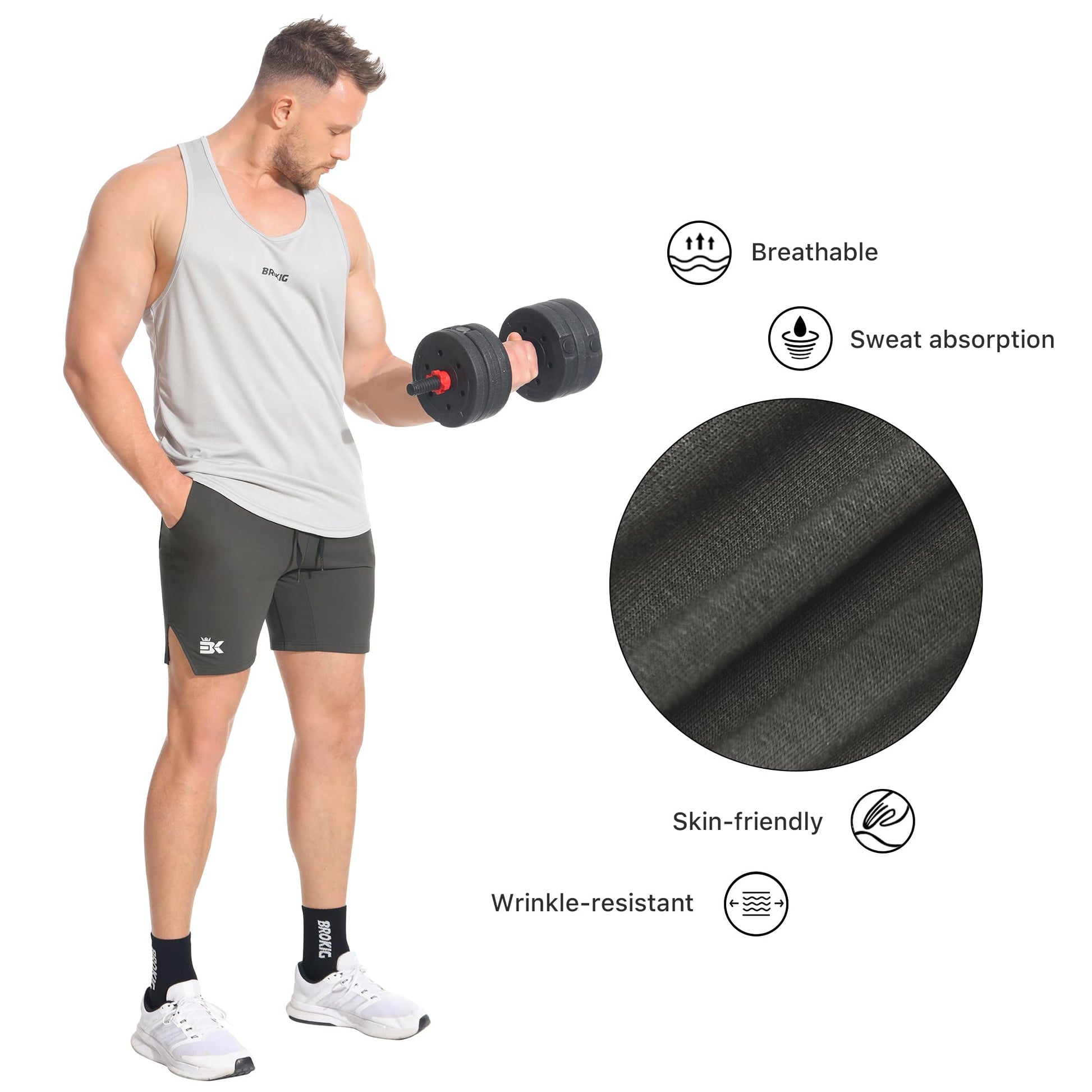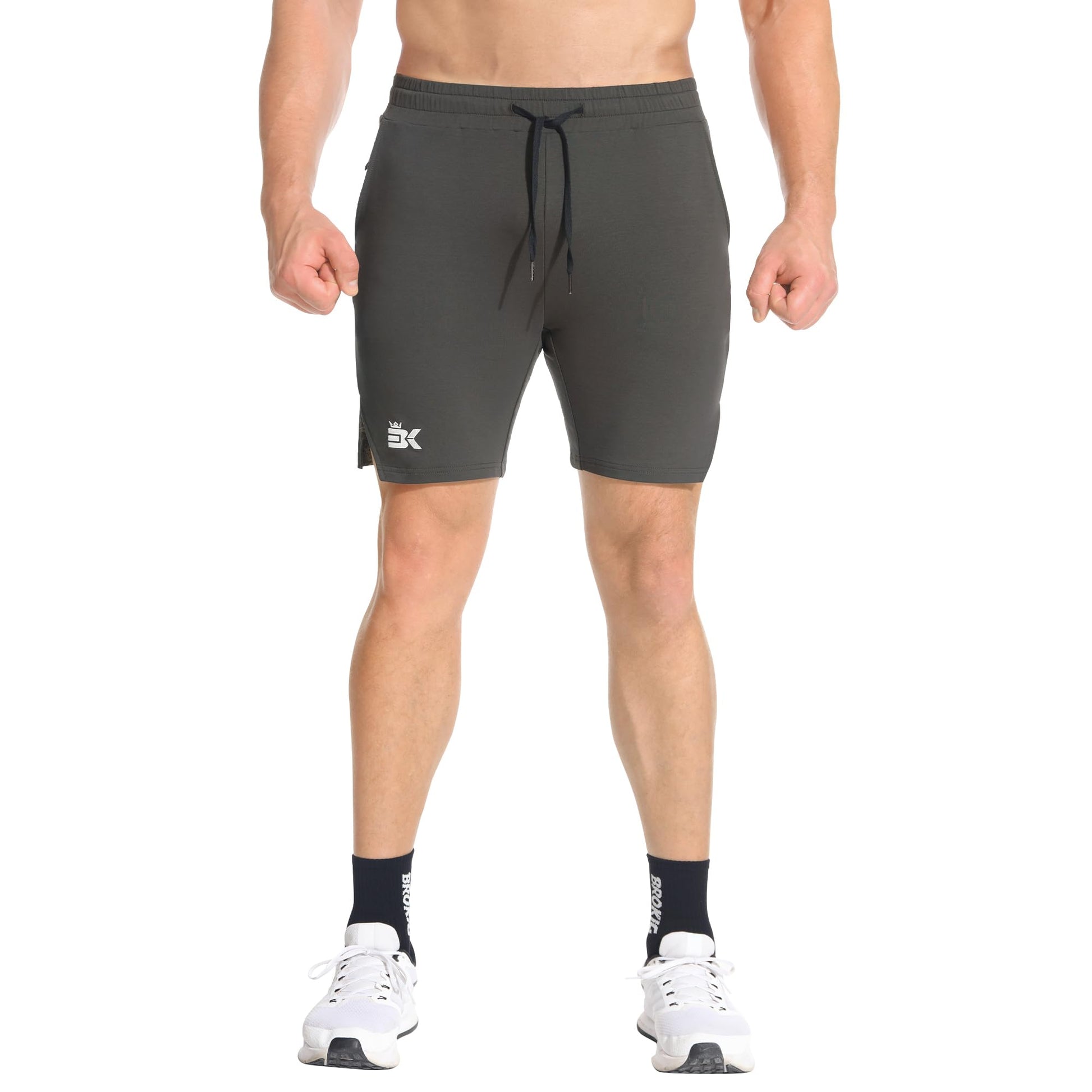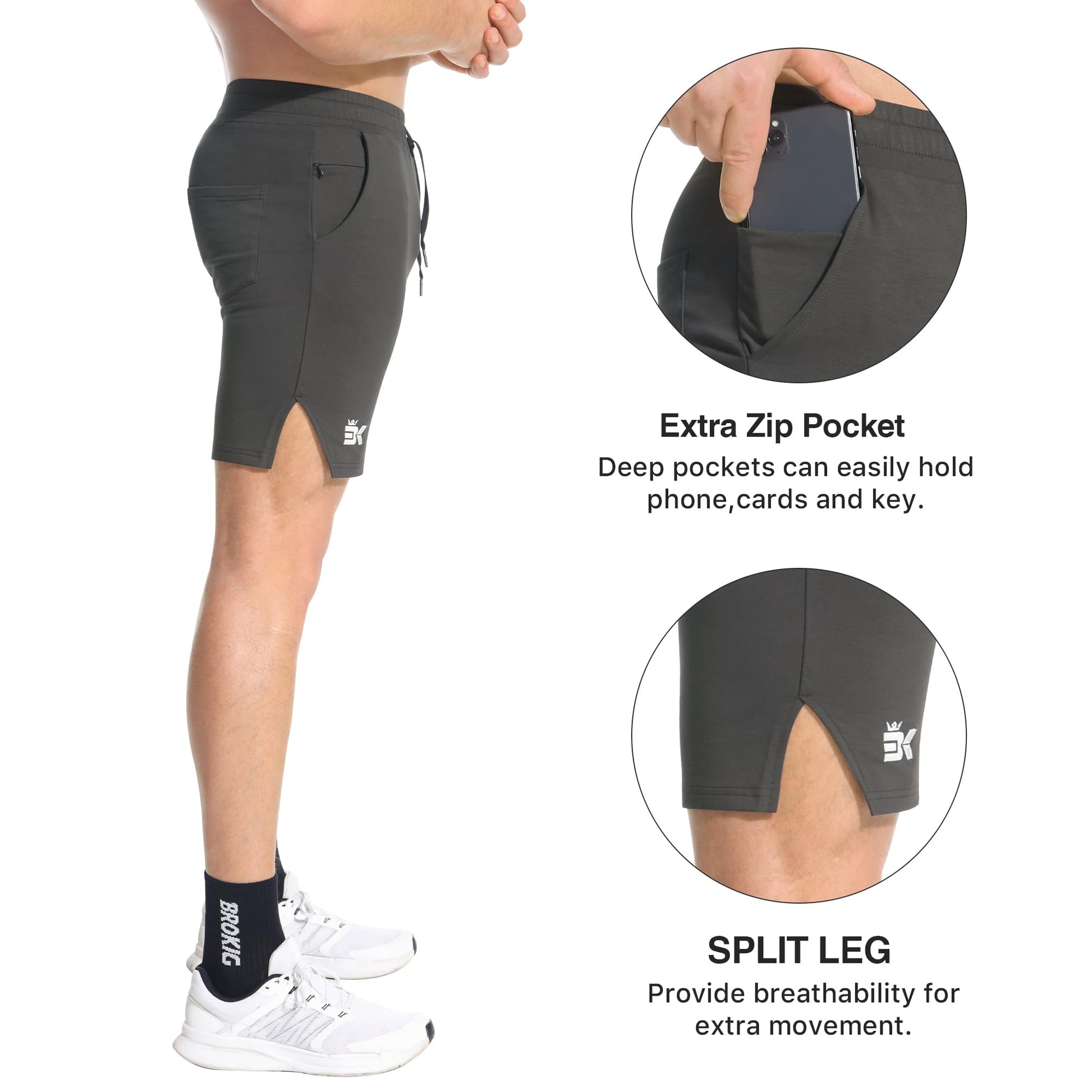 BROKIG Men's Airstretch Gym Shorts,5 Inch Slim Fit Running Exercise Athletic Workout Shorts for Men with Zipper Pockets(Oliver Grey,Medium)