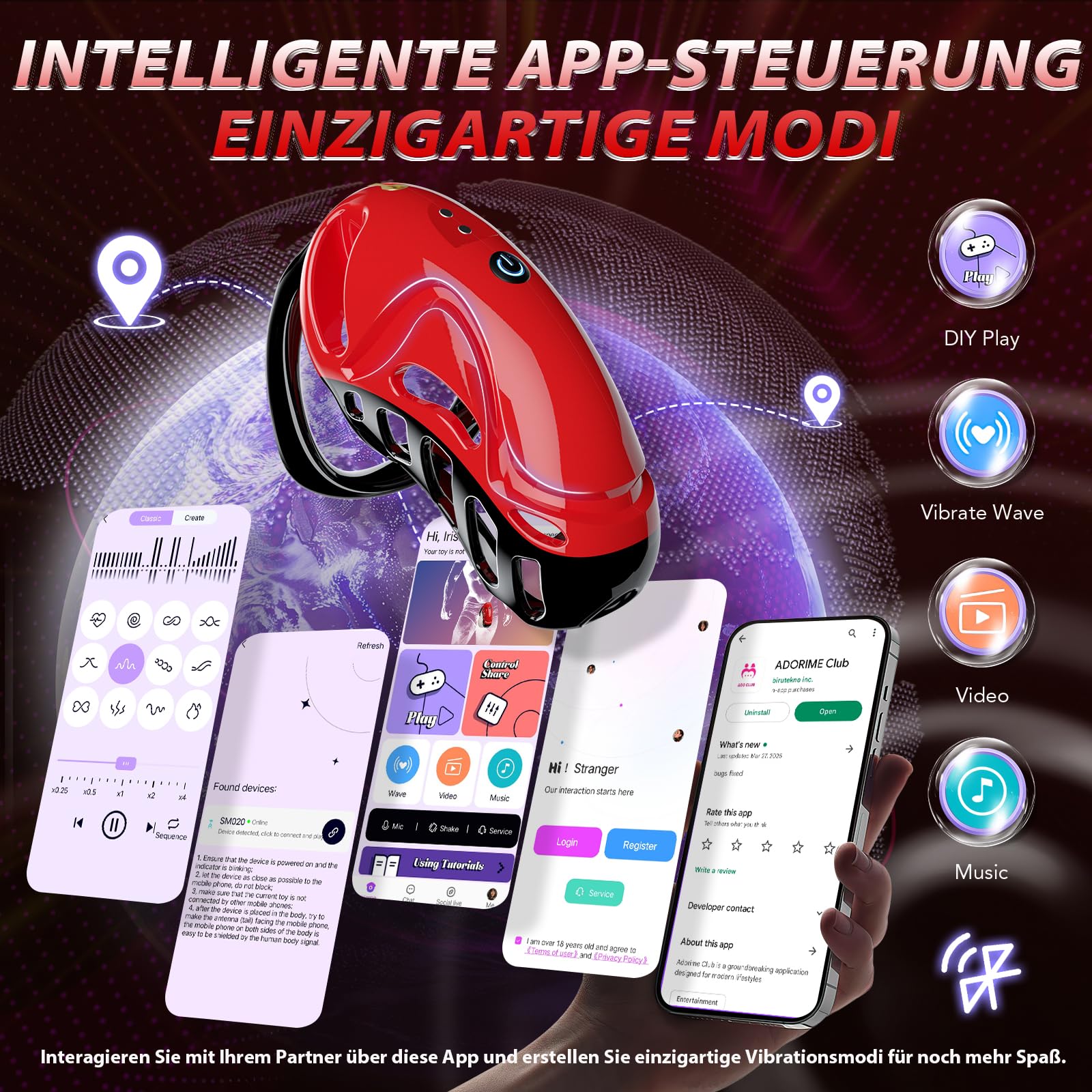 • 📱 KEUSCHHEITSGÜRTEL MIT APP & FERNGESTEUERTE NECKEREIEN – Jederzeit und überall Übernehmen Sie die Kontrolle oder geben Sie sie ab, egal wo Sie sich gerade befinden, dank des dualen Fernbedienungs- und App-Steuerungssystems. Egal, ob Sex Toyset für man sich im selben Raum oder kilometerweit voneinander entfernt befinden, Ihr Partner kann die Einstellungen ganz einfach über einen gemeinsamen Link anpassen. Entdecken Sie Distanzverweigerung und Echtzeit-Dominanz – ein unverzichtbares Accessoire für moderne Sex Spielzeug für die paare.