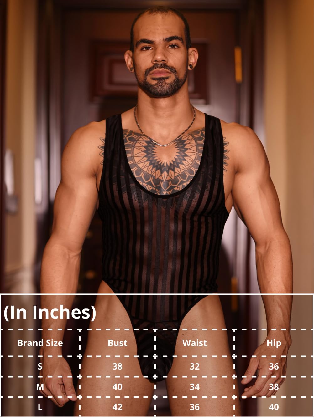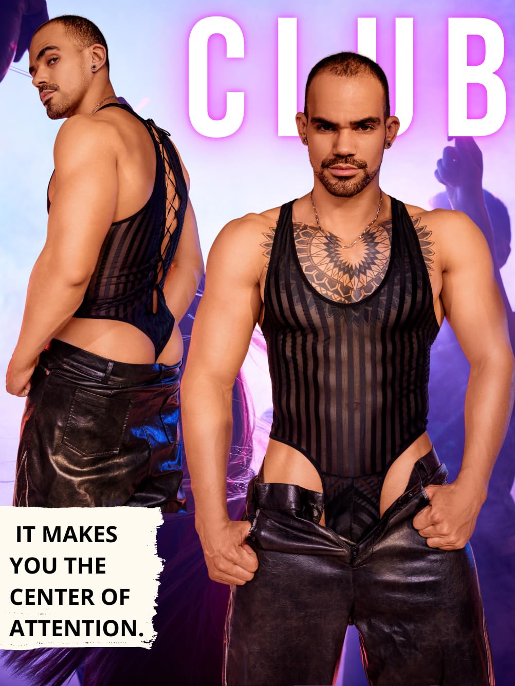ChiaoLezhee Mesh Bodysuit For Men, Mens Thong Lingerie, Sheer Tank Top Man, Sissy Clothes Singlet Sexy Underwear Fishnet Gay, Black, Small