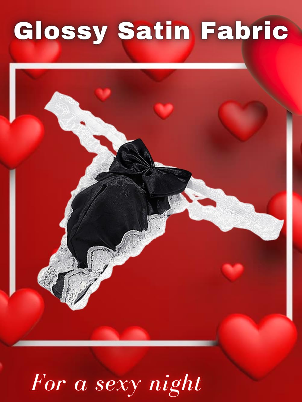 ChiaoLezhee Valentines Lingerie For Men, Satin Lace Sexy Underwear, Sissy Panties Femboy, Bow Girly Thong,Black