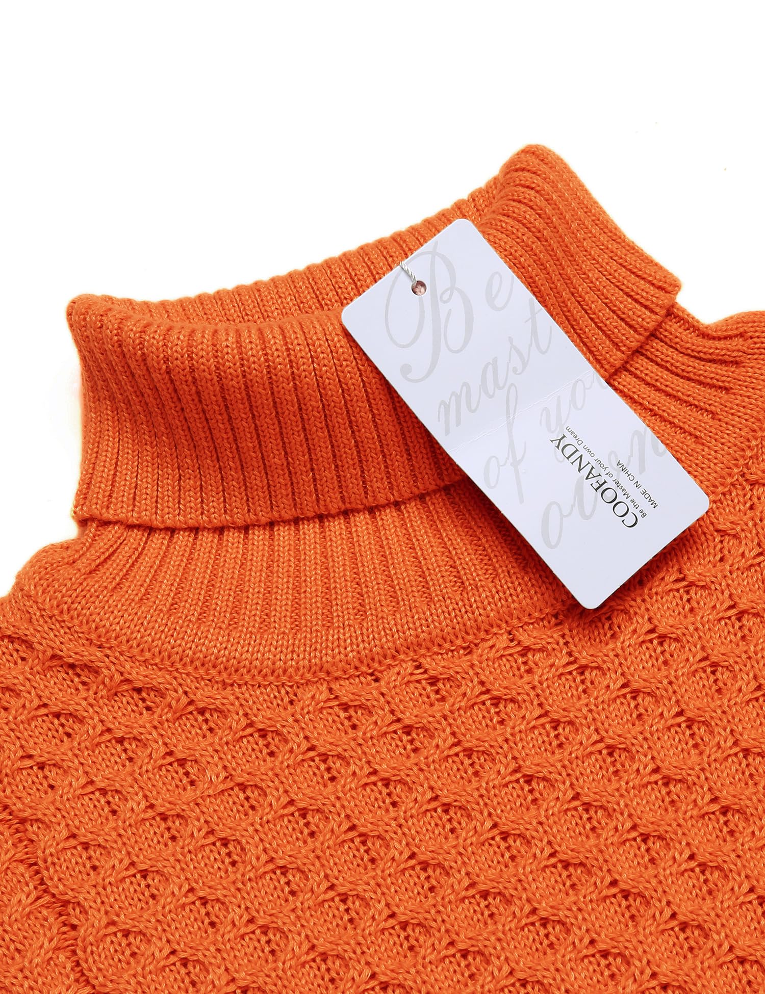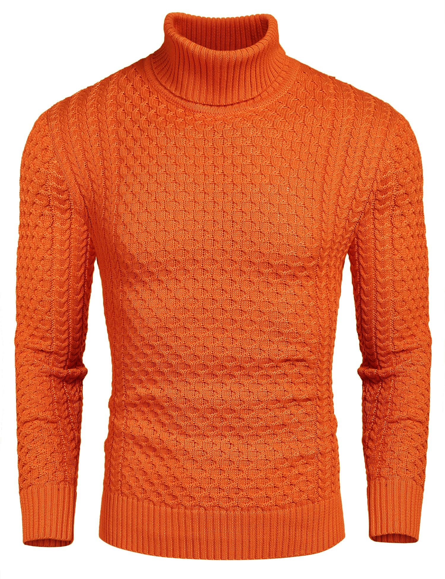 COOFANDY Men's Slim Fit Turtleneck Sweater Casual Knitted Twisted Pullover Solid Sweaters Orange