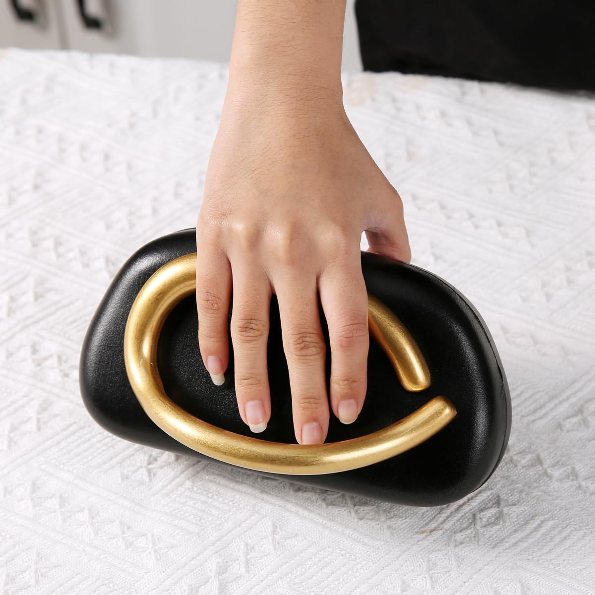 Dreubea Minimalist Gold-Tone Art Deco Clutch Bag – Elegant Metallic Accent Evening Handbag Purse for Women Black