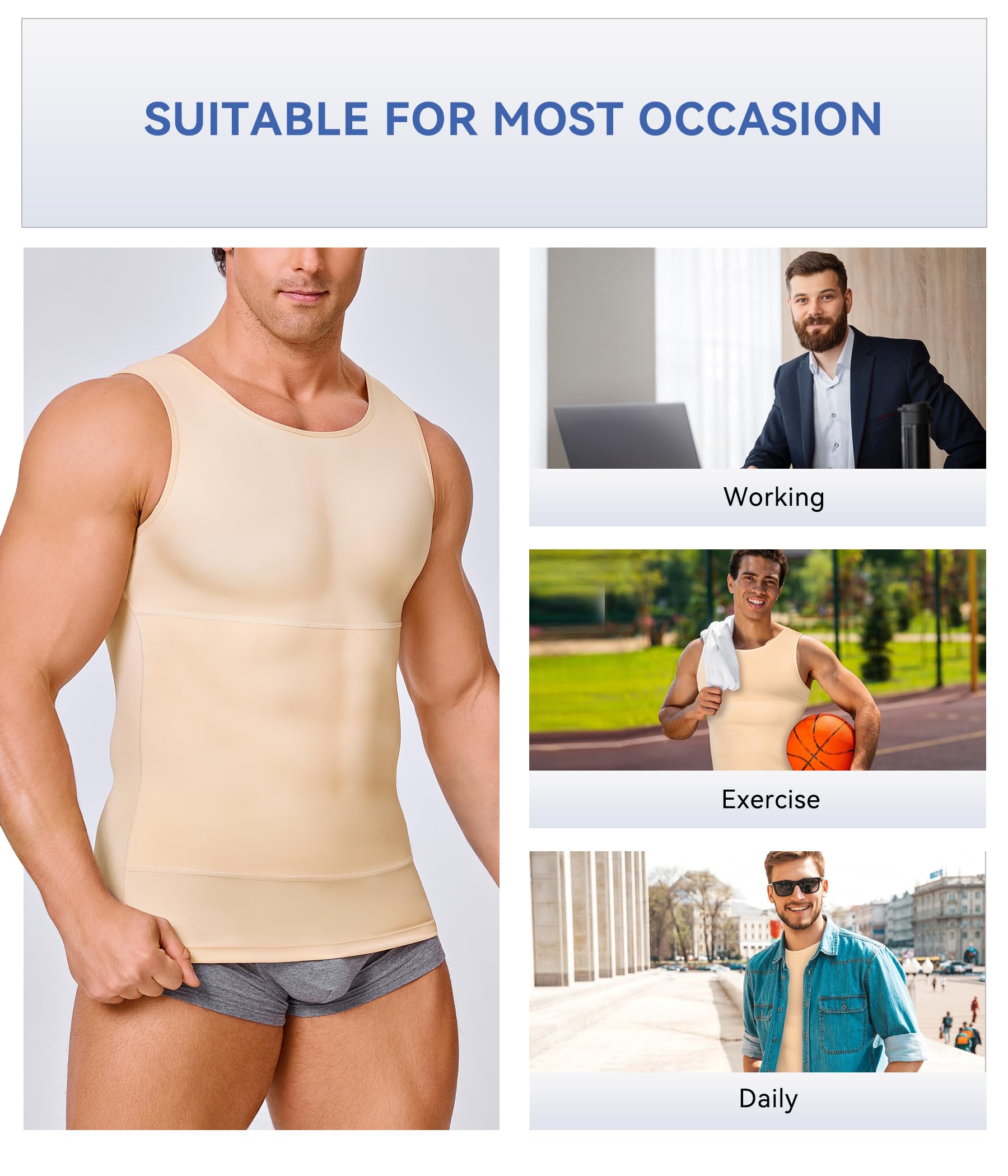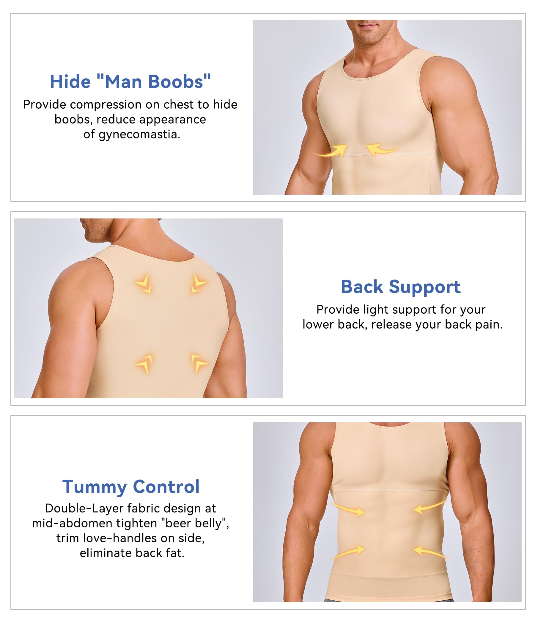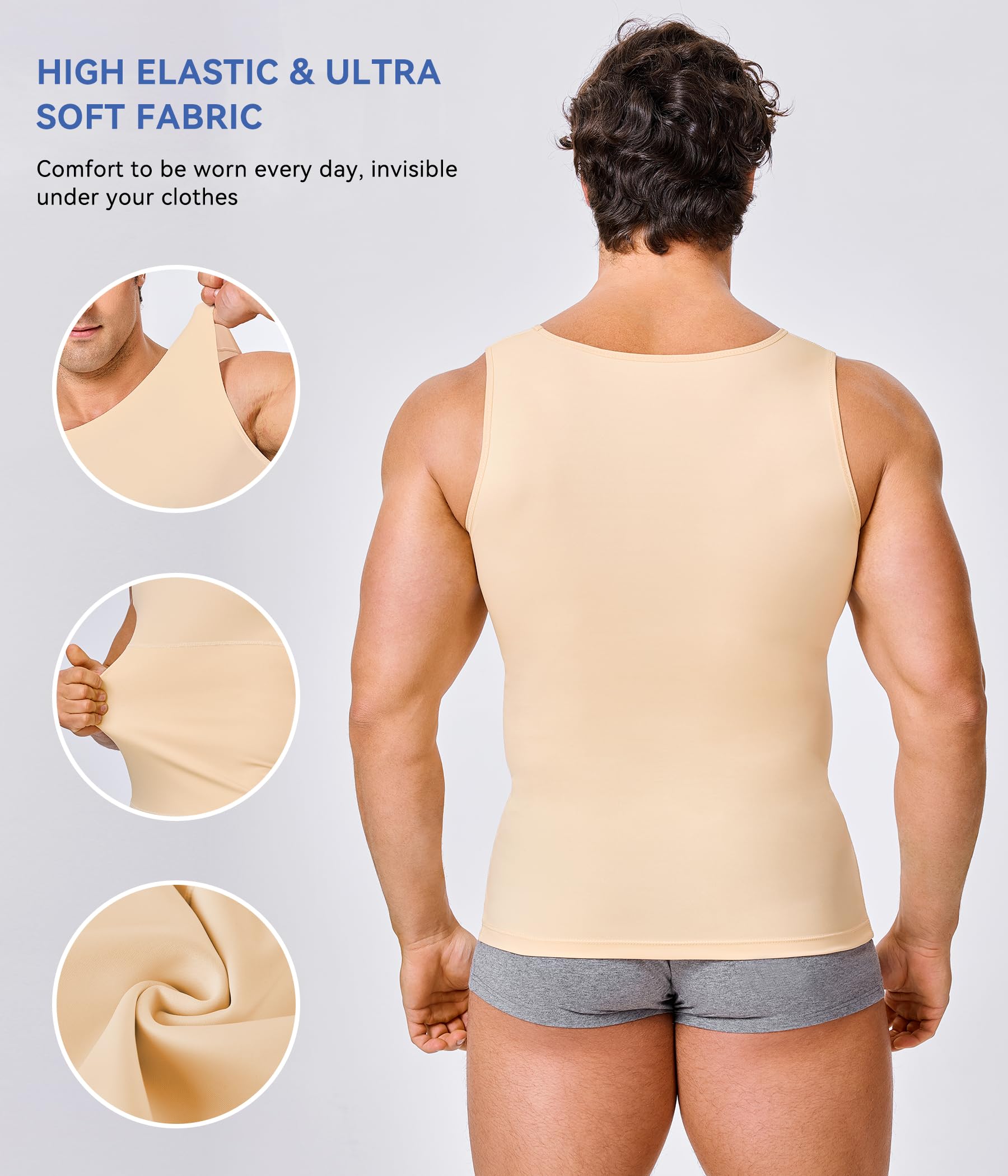 Eleady Mens Slimming Body Shaper Vest Compression Shirt Abs Abdomen Shapewear Workout Tank Top Undershirt (Large, Beige Tops)
