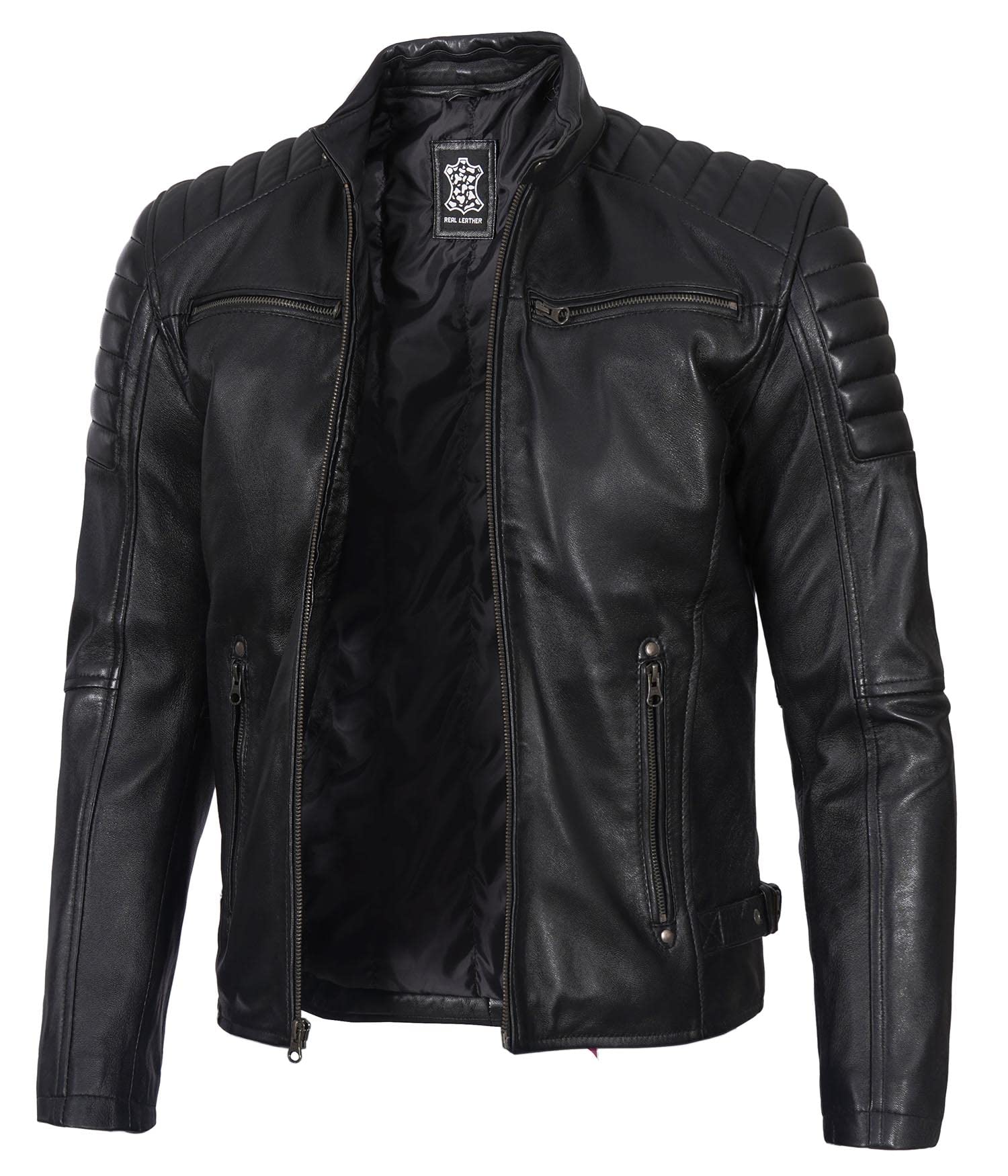 Experience Timeless Style and Unmatched Craftsmanship with the Real Leather Cafe Racer Jacket for Men | [1114363] Felix Black, M