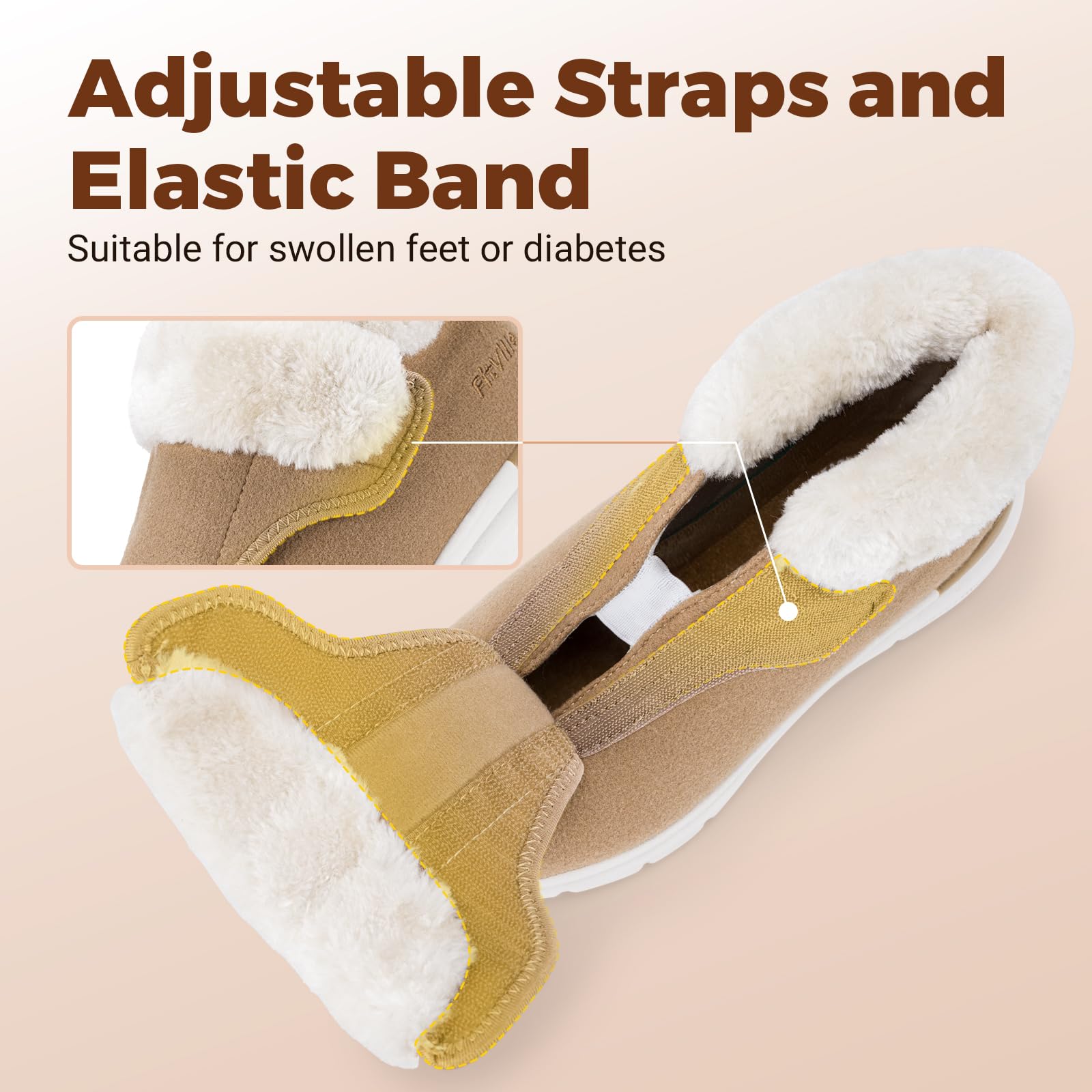 - Swollen Feet Shoes - The warm diabetic slippers boots for women features extra wide toe box to provide the maximum level of comfort for those with wide or swollen feet.