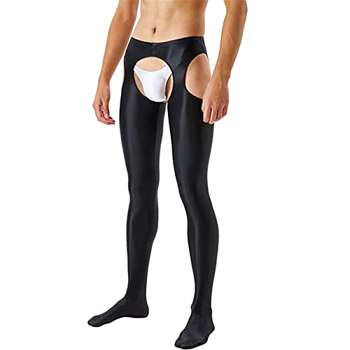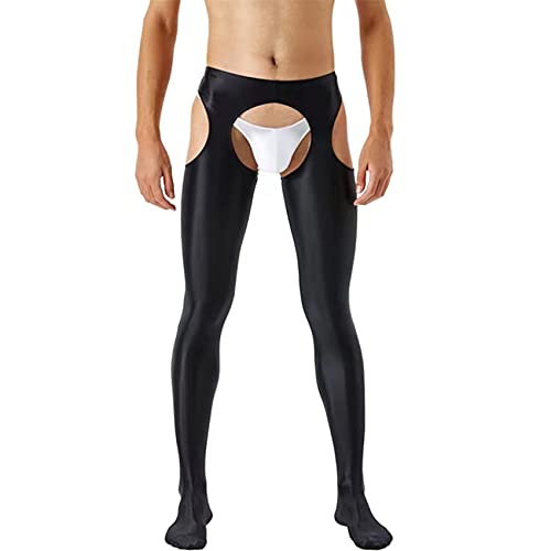 FiwoXam Men's 70D Glossy Compression Long Pants Hollow Out Tights Trousers Full-Length Pantyhose (as1, Alpha, x_l, Regular, Regular, Black)