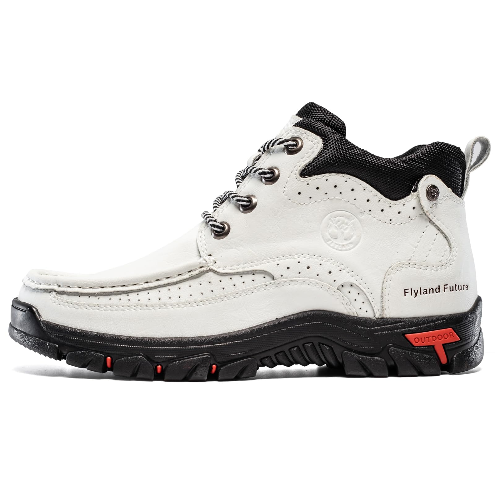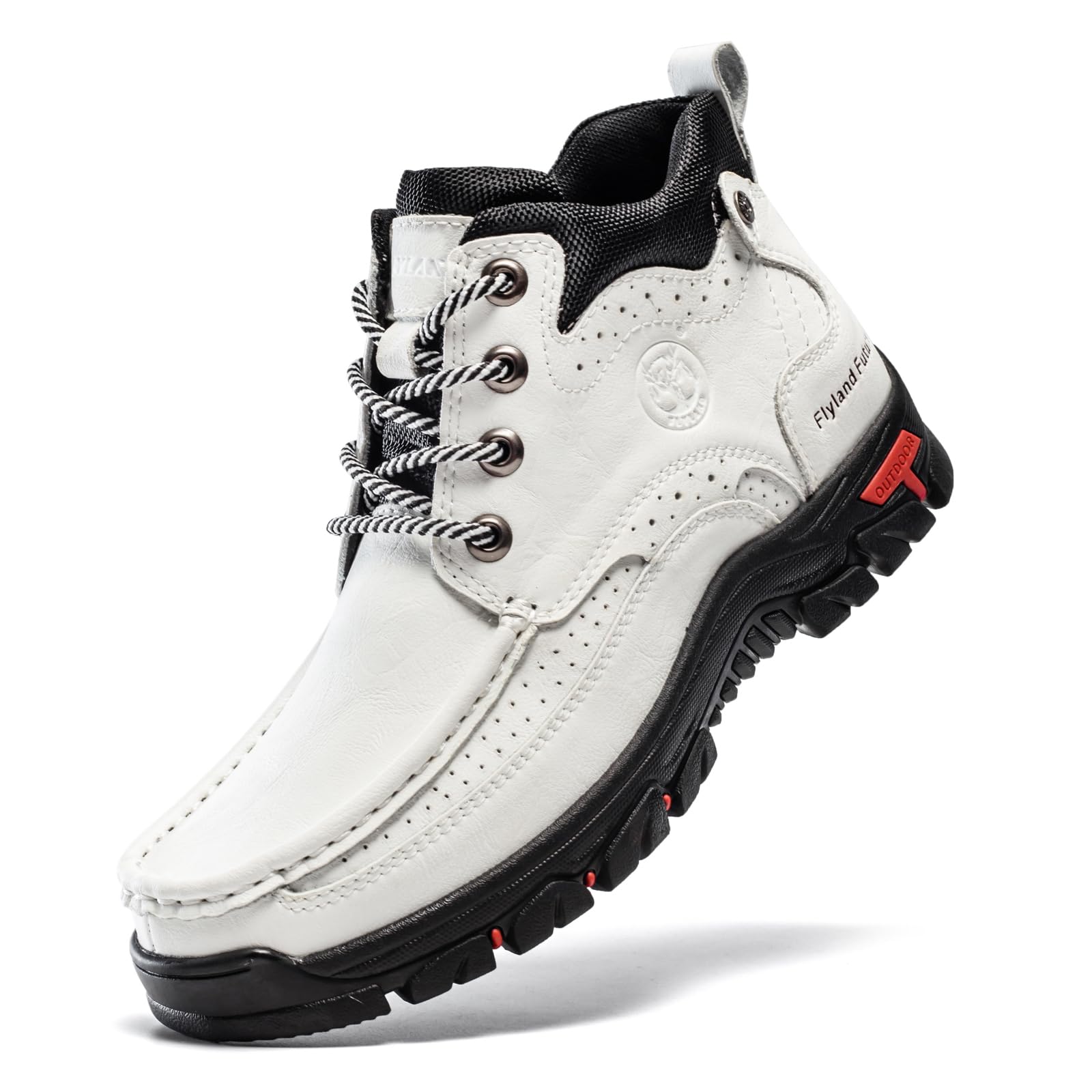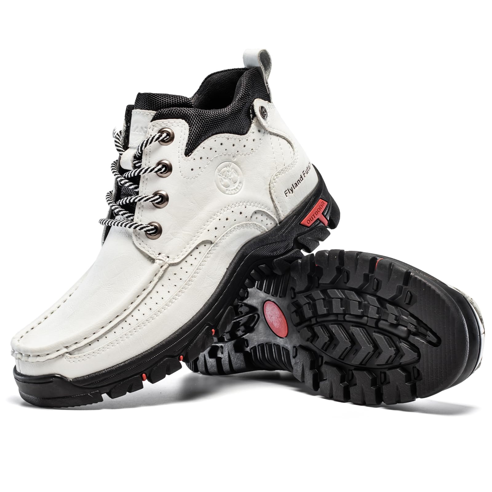 FLYLAND Men's Casual Boots Vintage Leather Ankle Dress Boot Chukka Boots Mid Top Non-Slip Driving Walking Shoes White 10.5