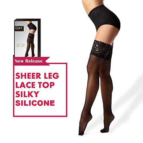 G&Y Thigh High Stockings with Silicone - 15D Sheer Lace Top Nylon Stay Up Pantyhose for Women