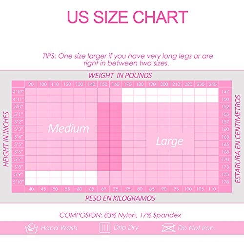 Details: Black Thigh High Stockings – Ultra Sheer 15D Nylons For Women Show Your Legs Off - Sensual stockings for special event - Chic thigh highs for sexy costume - Perfect Gift for Ladies and Gentlemen G & Y | SEXY LINGERIES AND STOCKINGS - Soft Microfiber Thin Weave - Non-Slip Silicone Layer - Smooth & Soft Fabric - Reinforced Durable Toes - Silky Reflections Sexy Legs - Rose Pattern Lace thighs SIZE – HEIGHT – WEIGHT -[ Medium ] – 4’10”~5’8” – 90-150 lbs -[ Large ] – 5’0”~5’10” – 160-240 lbs COMPOSITION - Pantyhose : 83% Nylon, 17% Spandex/Elastane CARE INSTRUCTIONS - Hand Wash and Drip Dry - Do NOT Machine Dry - Do NOT Bleach - Do NOT Iron RETRURN & EXCHANGE Every stockings we sold out are brand new and packaged carefully. We also provide return and exchanges for factory defects and size problems. For some sanitary reasons, these returned stockings cannot be sold twice. Therefore, we recommend that you check the size chart in the gallery before purchasing. If you have any questions about which size fits, please feel free to ask. We are always there for your questions.