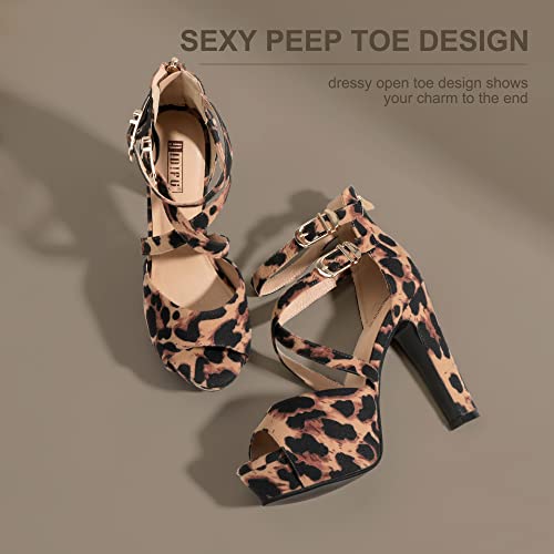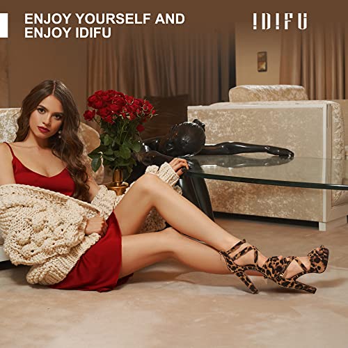 IDIFU Women's IN5 Charcy Crisscross Strappy Platform High Chunky Heels Peep Toe Pump Party Heeled Sandals (Leopard Suede, 12 M US)