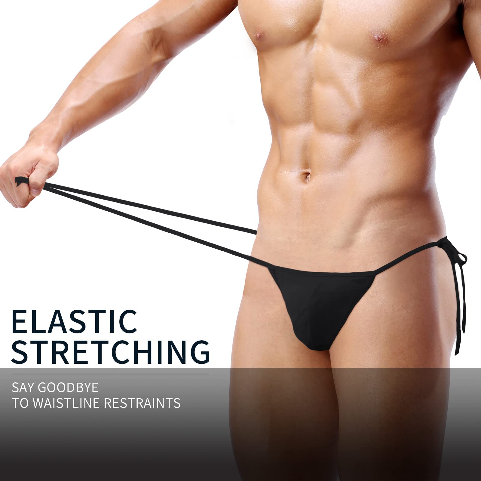 JEERLEEP Mens Sexy ice Silk Bikini Tie Side G String T Back Thongs Briefs Adjustable Underwears(Black)