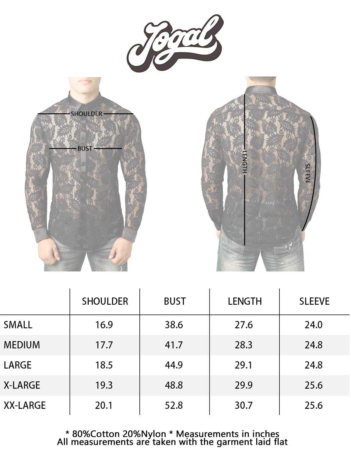 JOGAL Men's See Through Flower Lace Sheer Blouse Long Sleeve Button Down Shirts Dark Black Large