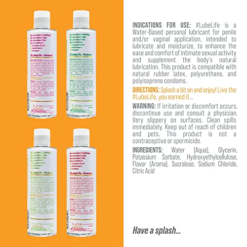 Lube Life Water-Based Four Drinks Minimum Flavored Lubricants, Personal Lube for Men, Women and Couples, Made Without Added Sugar, 8 Fl Oz