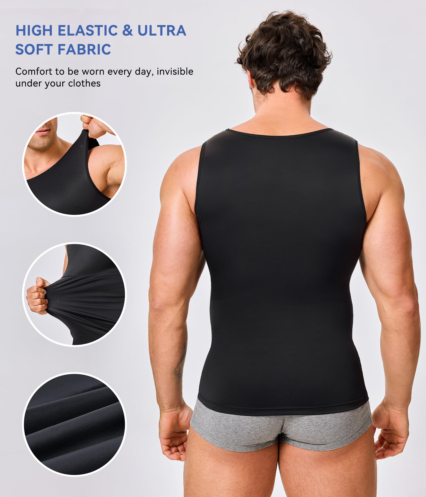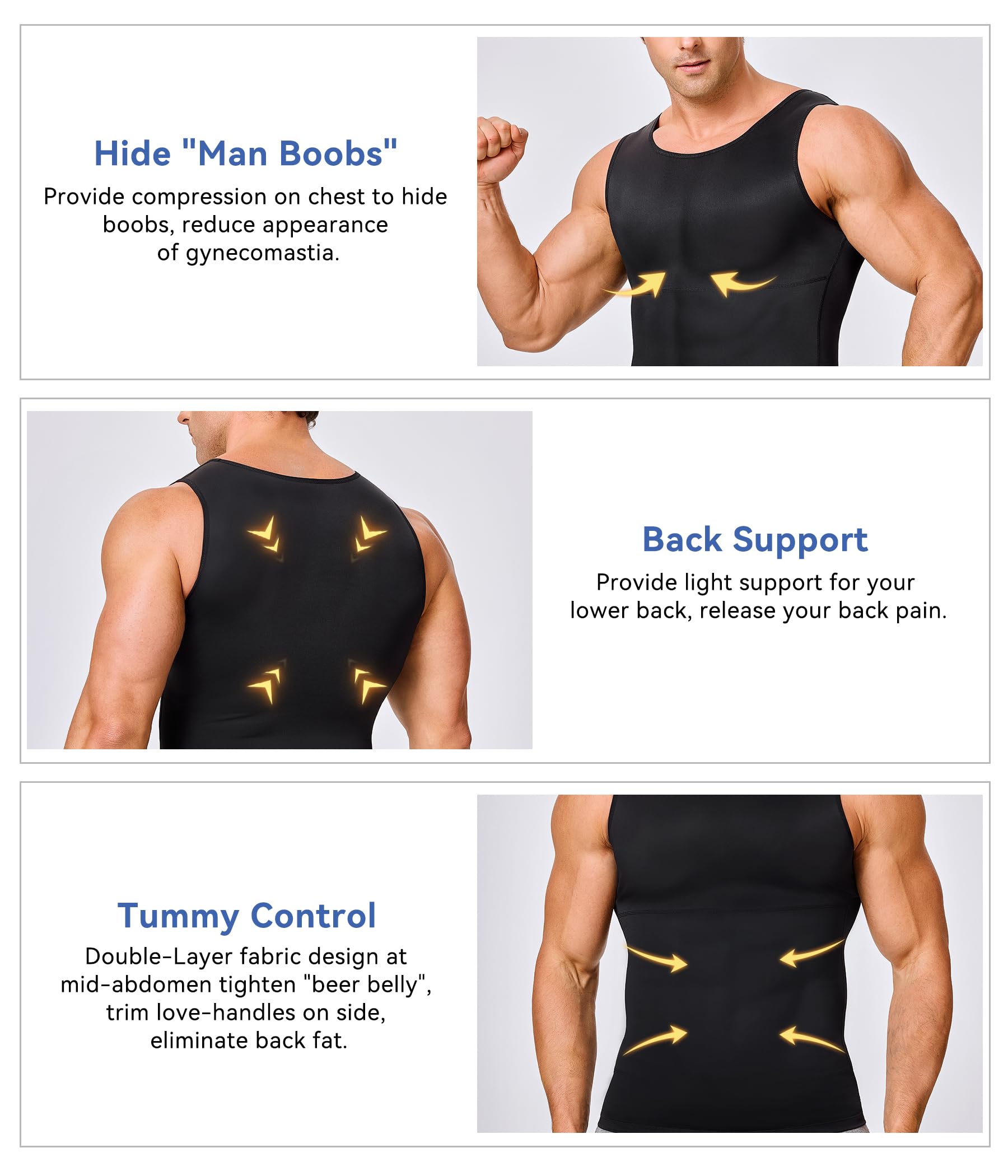 - Fat Burning Assistant:Wearing this mens shirts slim ,easily shape your chest ,waist and stomach,our tank shirt is specifically designed to reduce the appearance of Gynecomastia ,hide "man boobs",deal with "beer belly".Breathable for improving blood circulation and fat burning, and strongly chest shaping while workout or gym.