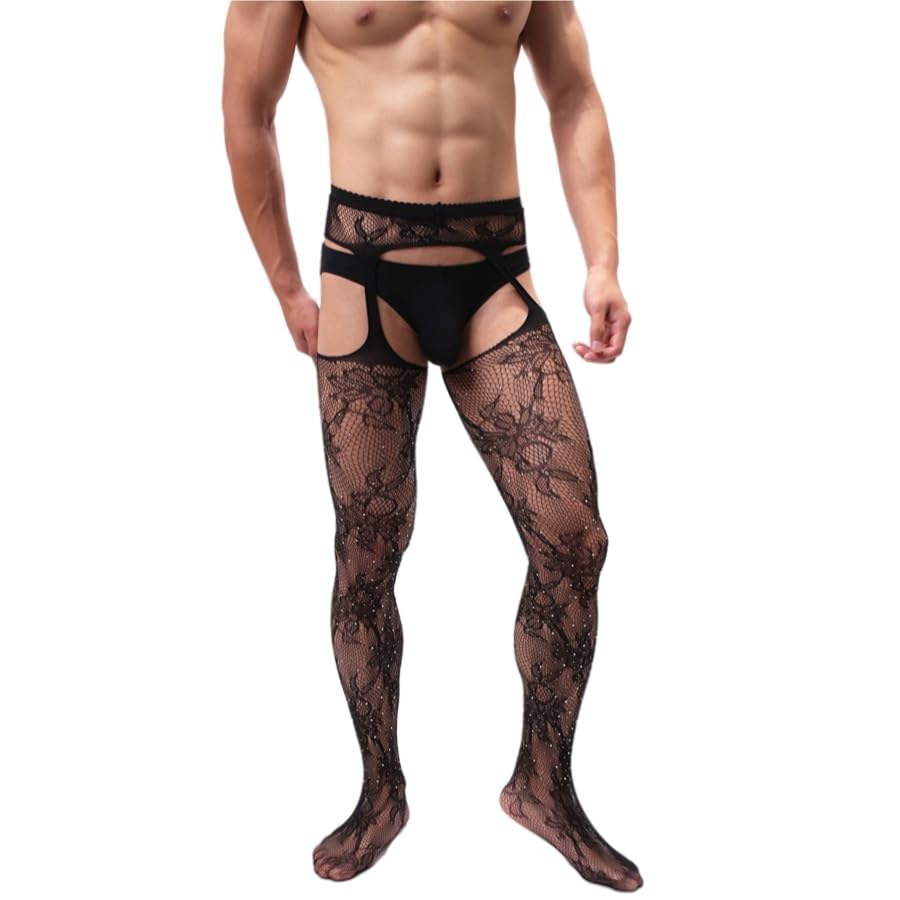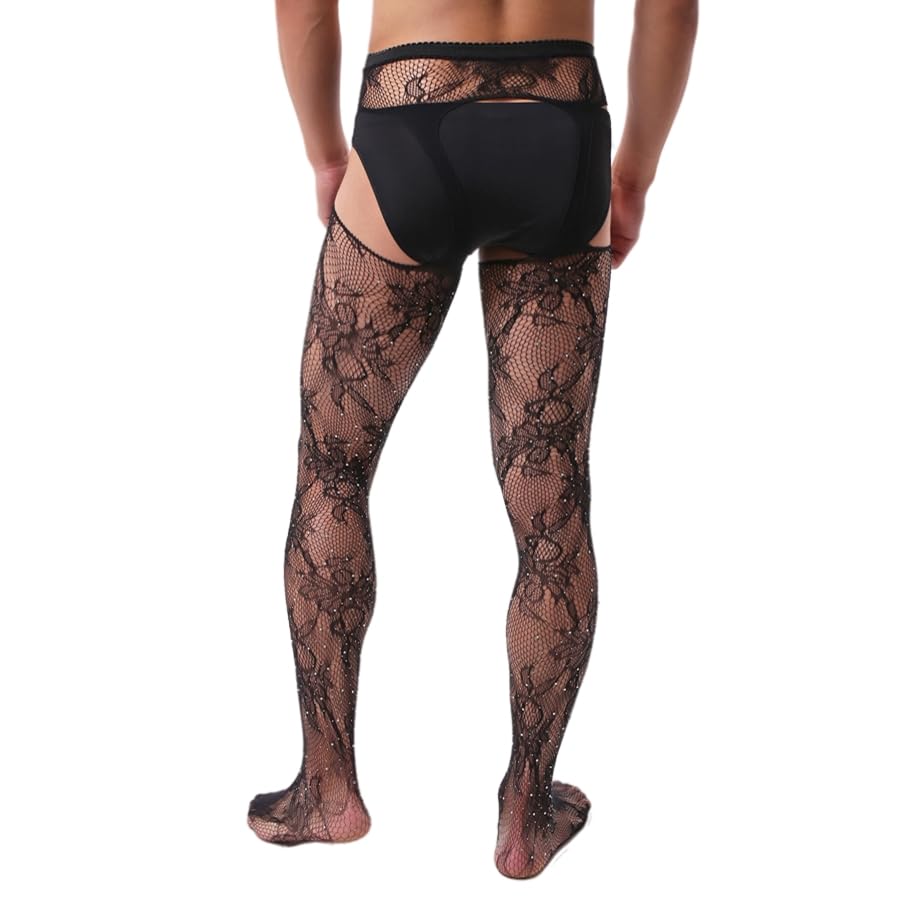- Elastic Rhinestone Fishnet Tights: suspender pantyhose style showing your unique charm and vitality, add a sense of elegance and style. The long-sleeved pullover feels soft and comfortable, and you will love it when you receive it. Fits for most men.