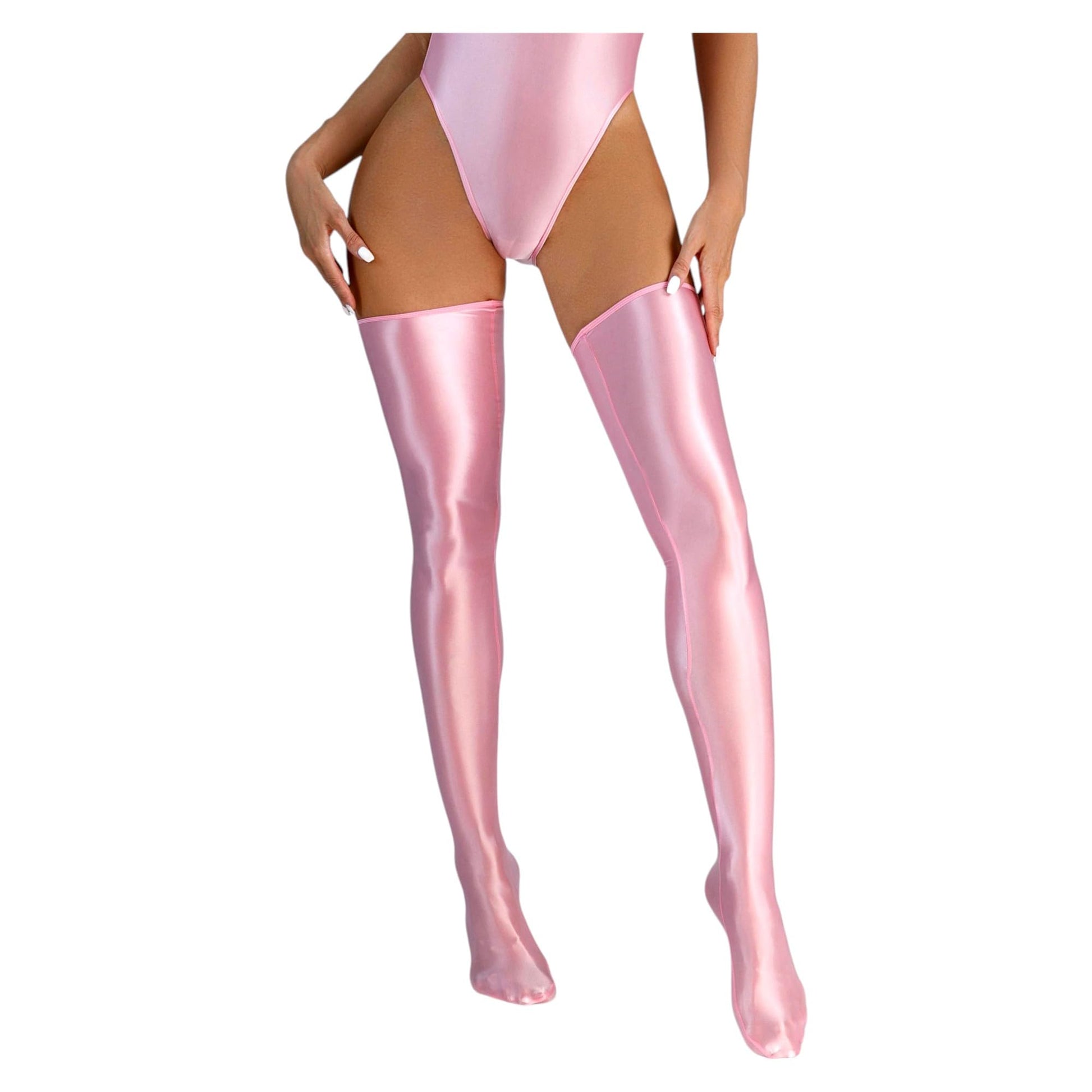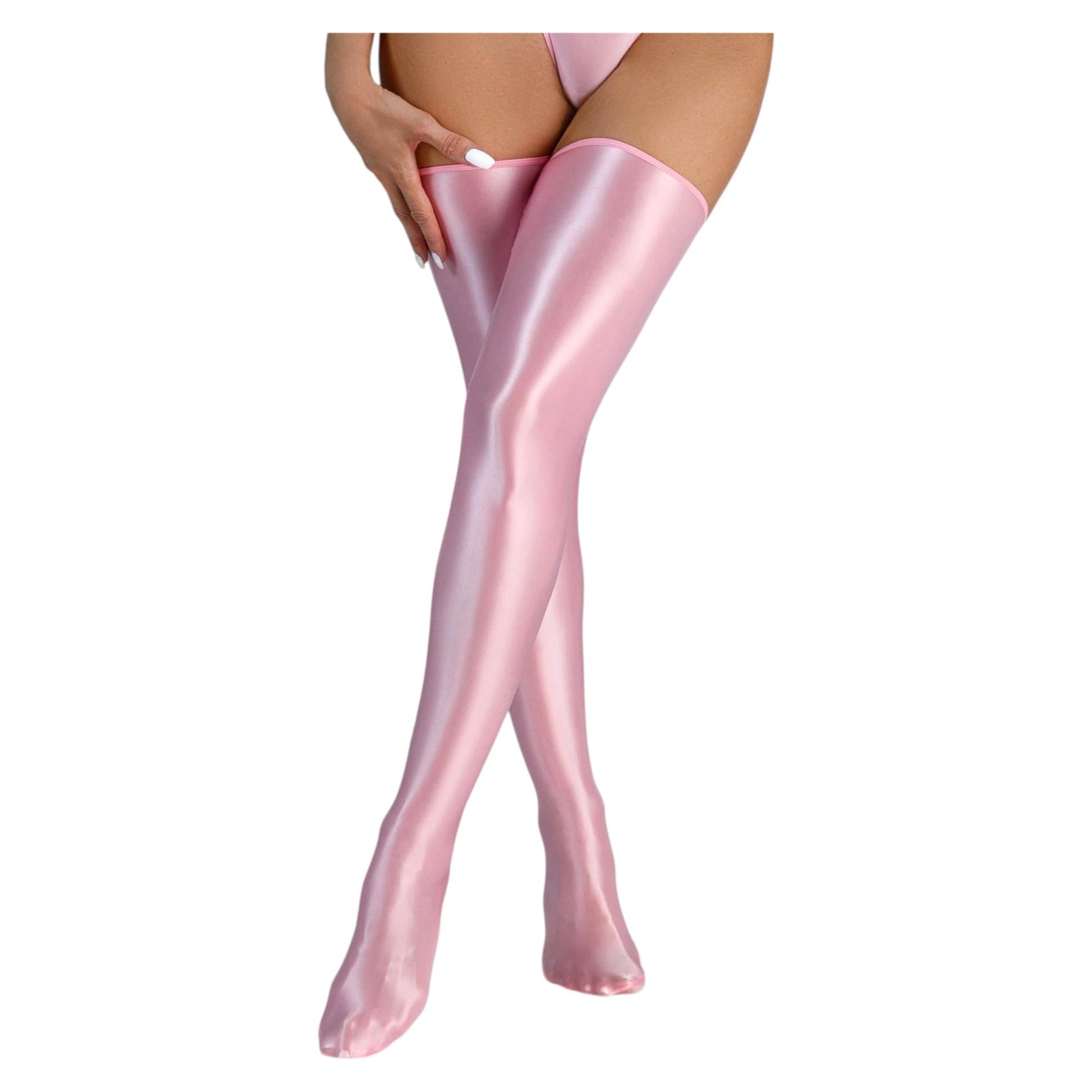 Men's Sissy High Over Knee Glossy Oil Shiny Stocking, Femboy Thigh High Stockings, for Cross-dressing (US, Alpha, One Size, Regular, Regular, Pink)