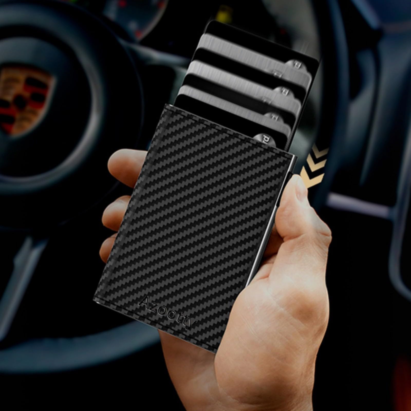- 【Enough Space】: 12 Cards can be inseted in this lightweight and compact aluminum wallet, with 3-4 additional cards (1 ID windows included) in the PU cover, another 6 cards can be stored in the aluminum champer of the wallet, 1 or 2 cards can be inserted in outside of the aluminum champer.