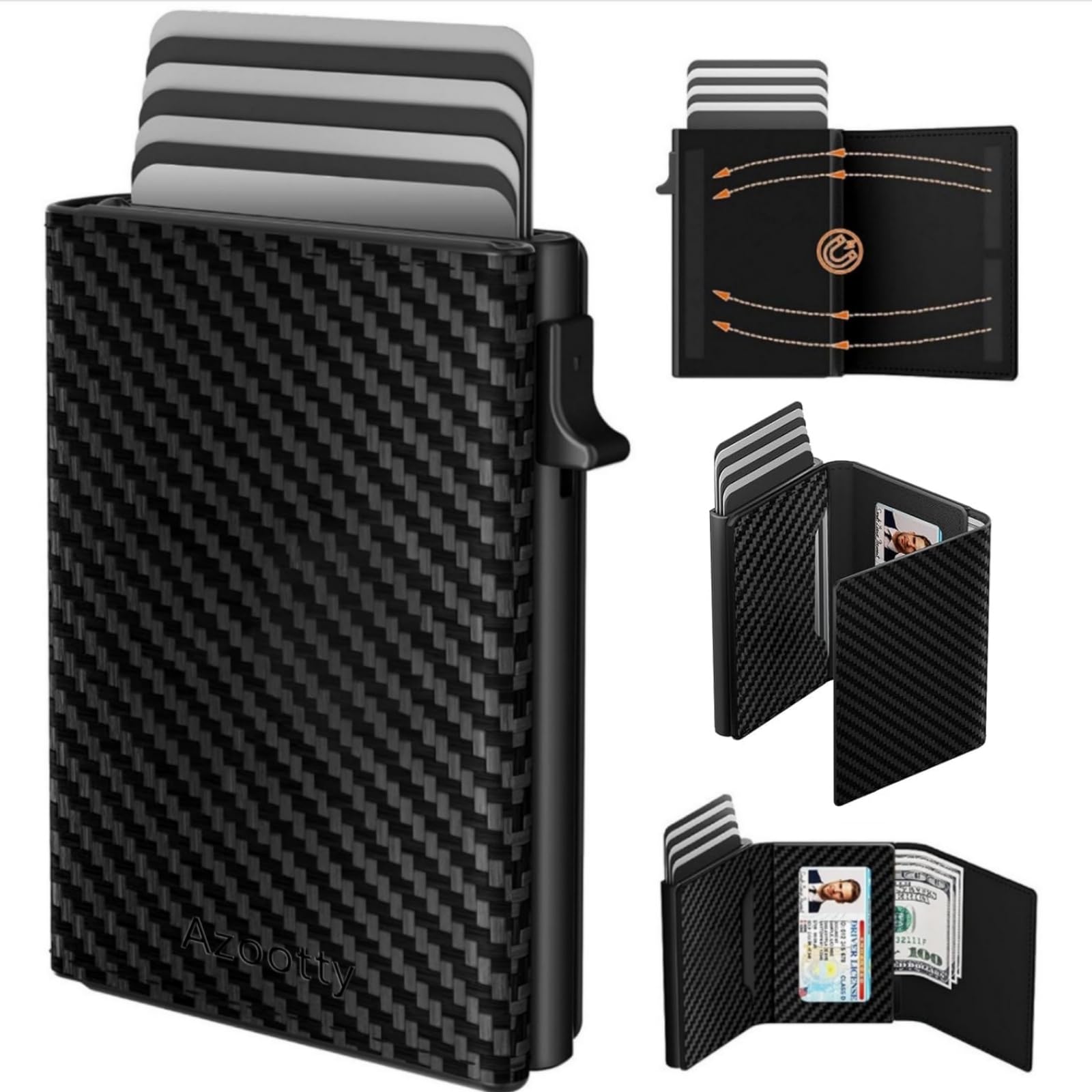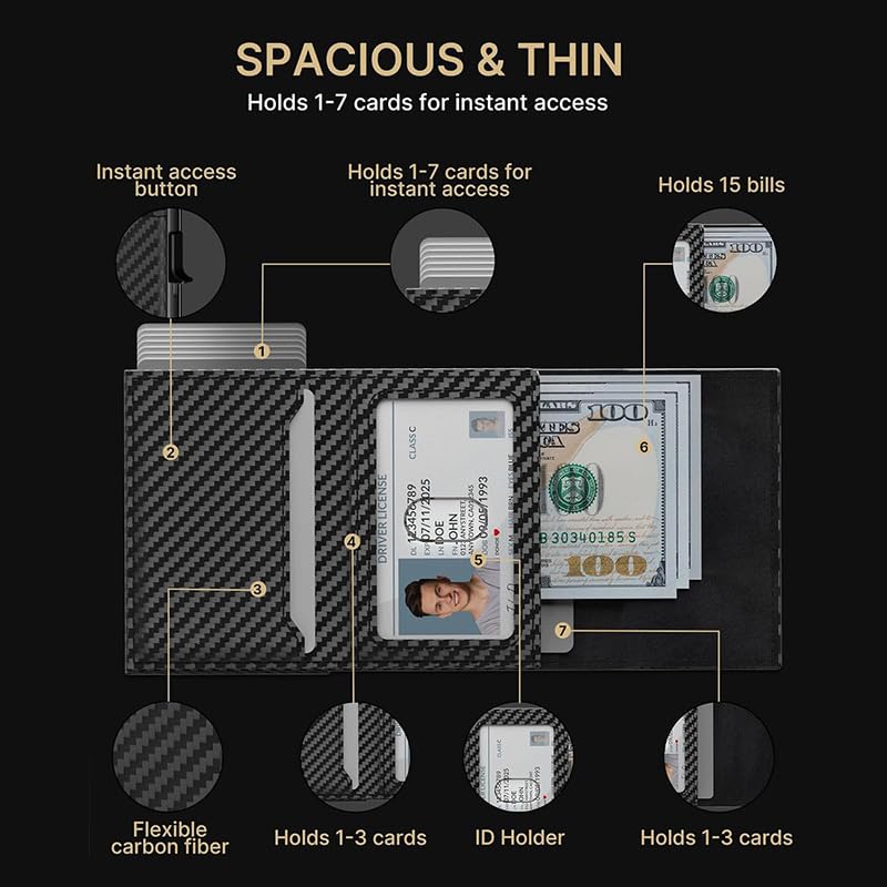 Mens Wallet Card Holder, Mens Minimalist Wallet 6-10 Cards, Slim Compact Wallet with Money Clip & ID Window, RFID Blocking Smart Pop Up Card Wallet, Metal Aluminum Credit Card Holder Bifold Wallet