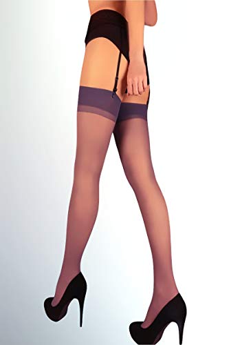 - Great sheer stockings for garter and suspender belt. 20 denier - sheer. Timeless classic, essential for your wardrobe, will add a touch of class and sex-appeal to any outfit. You can choose classic plain or patterned top. Highest quality made in EU.