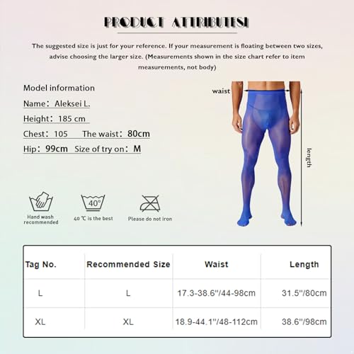 Miutii Men's See Through Mesh Closed Toes Footed Tight Leggings Stretchy Pantyhose Stockings Nude X-Large
