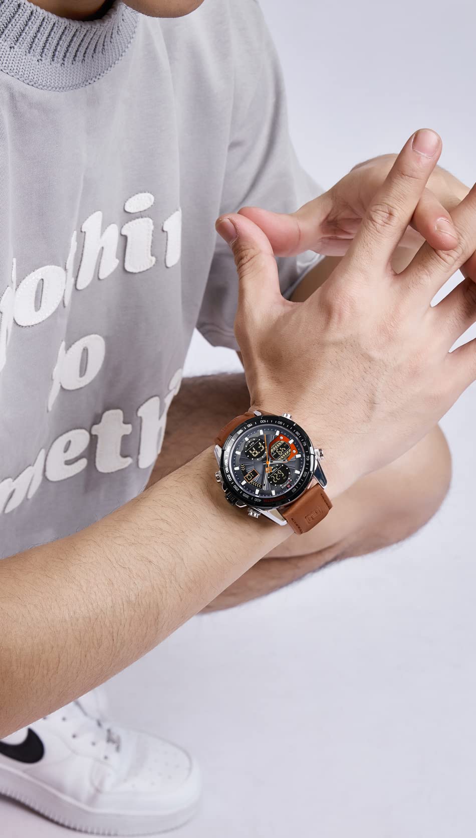 NAVIFORCE Men's Military Digital Watches Analog Quartz Waterproof Watch Sport Multifunctional Leather Wristwatch