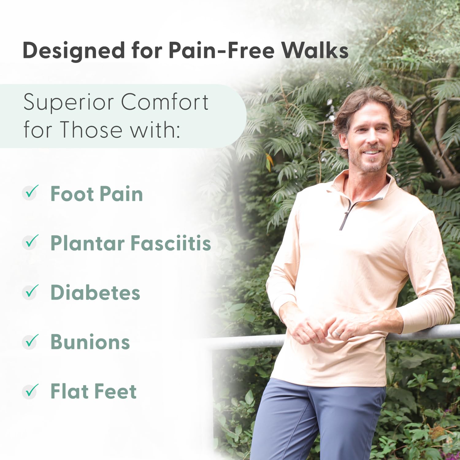 - Orthofeet shoes have unmatched cushioning and benefit 20+ conditions including foot and heel pain, plantar fasciitis, diabetes, arthritis, bunions, achilles tendonitis, hammer toes, and more.