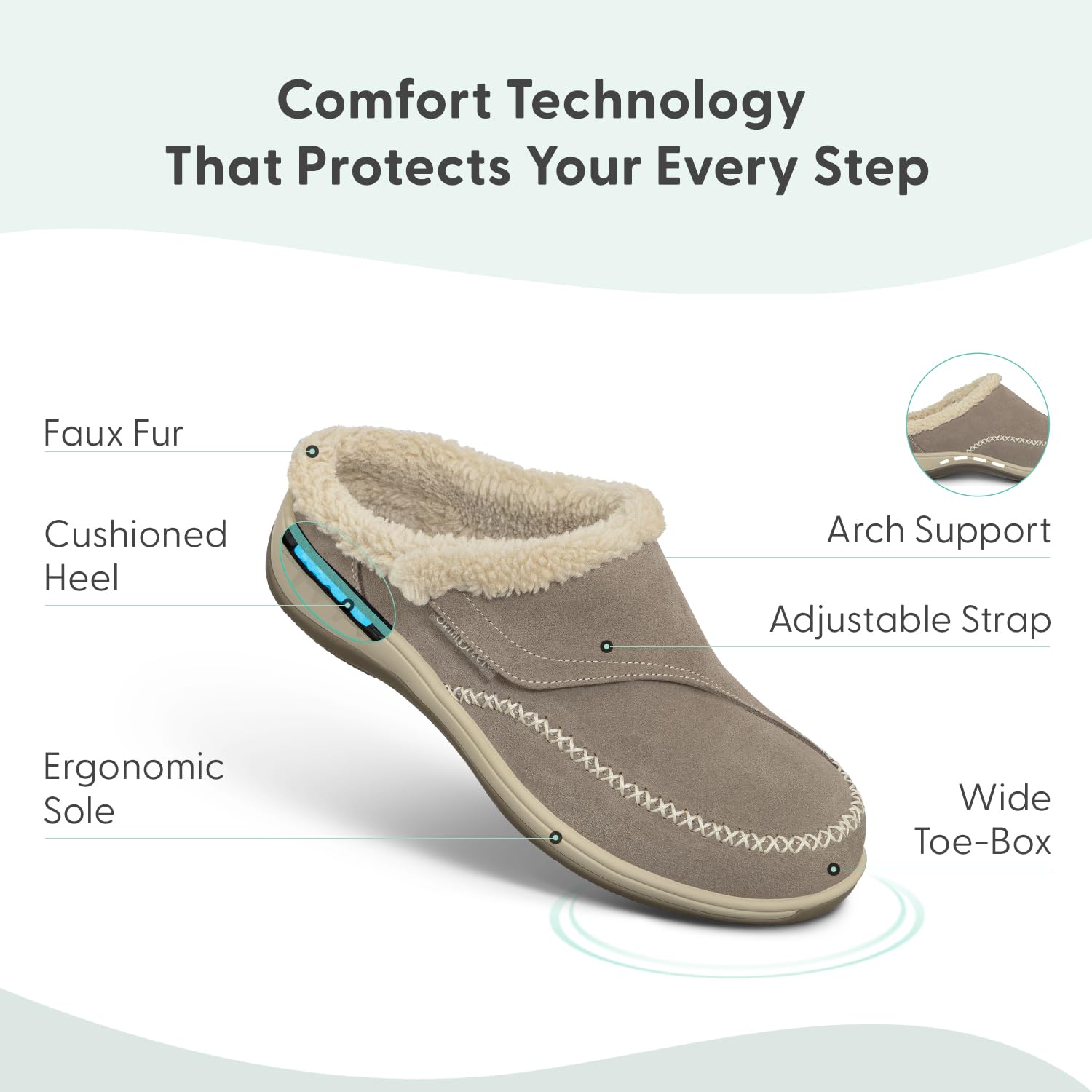 - Fit & Sizing: We recommend ordering a half size smaller slipper. Orthofeet slippers are designed with a wide toe-box and supple suede upper offers a non-binding fit.