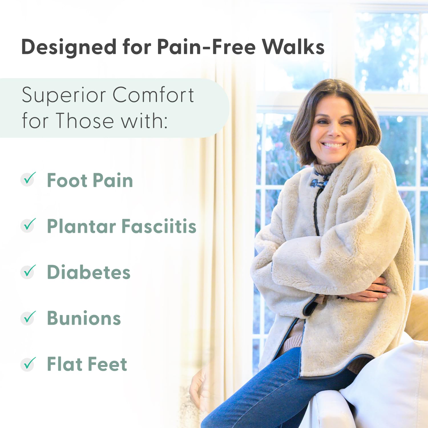 - Orthofeet shoes have unmatched cushioning and benefit 20+ conditions including foot and heel pain, plantar fasciitis, diabetes, arthritis, bunions, achilles tendonitis, hammer toes, and more.