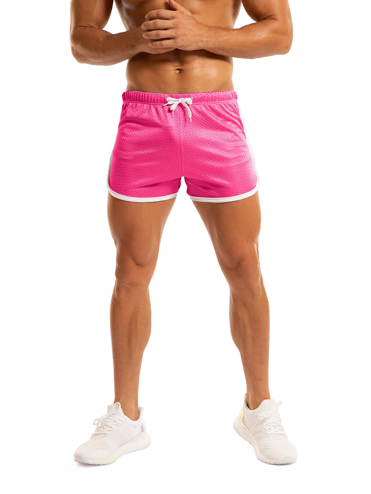 Ouber Men's Fitted Shorts Bodybuilding Workout Gym Running Tight Lifting Shorts (Pink, Medium)