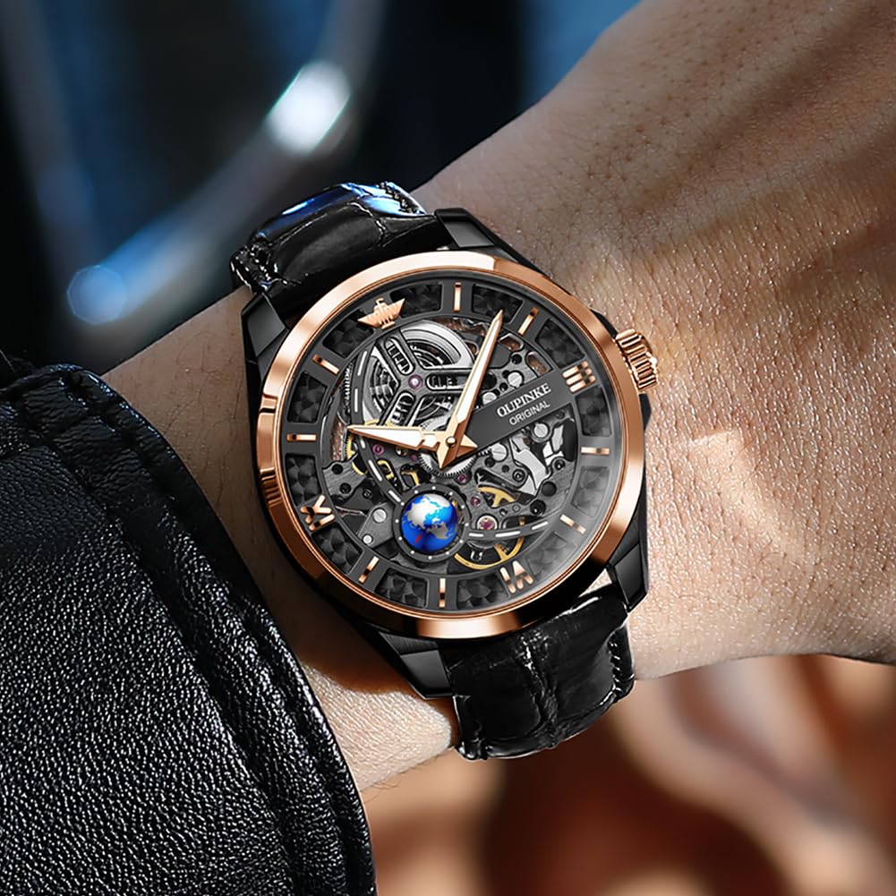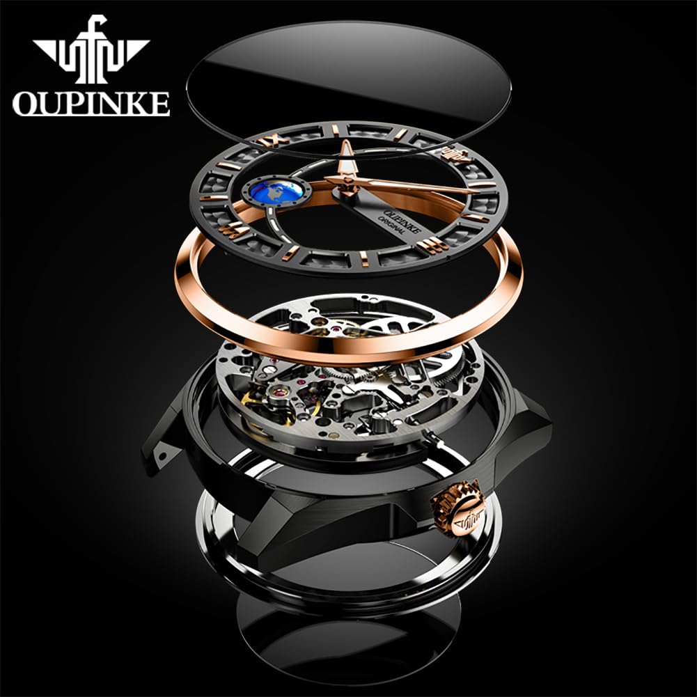 - OUPINKE Mechanical Watch: Watch built-in automatic mechanical movement, using 21 ruby bearing shaft to reduce running friction, longer service life. Soft leather strap for breathable comfort. The watch adopts double folding butterfly watch buckle, fashion and convenient. Very suitable for men of all ages.