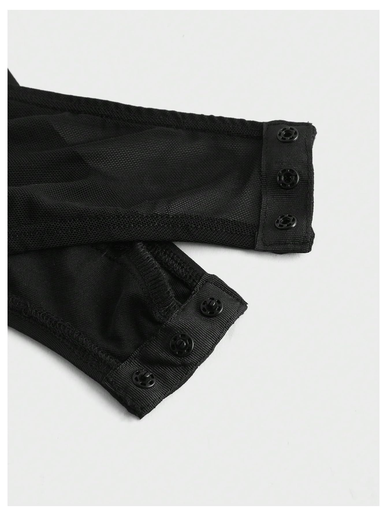 - Features: Contrast sheer, long sleeve, round neck, solid color, slim fit, and the snap button closure ensures easy wear