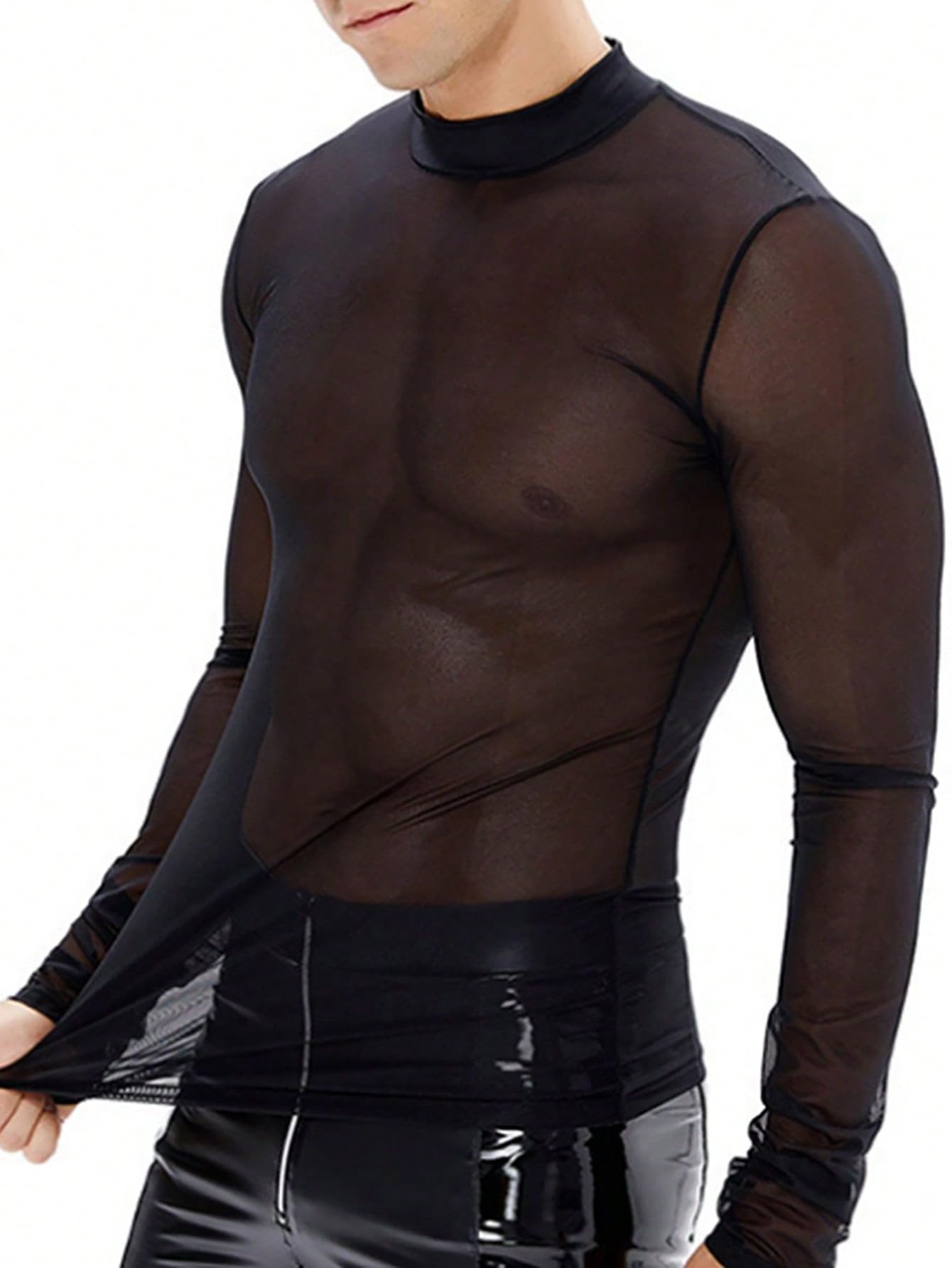 - Design: Sheer, long sleeve, mock neck, see through, solid t shirts