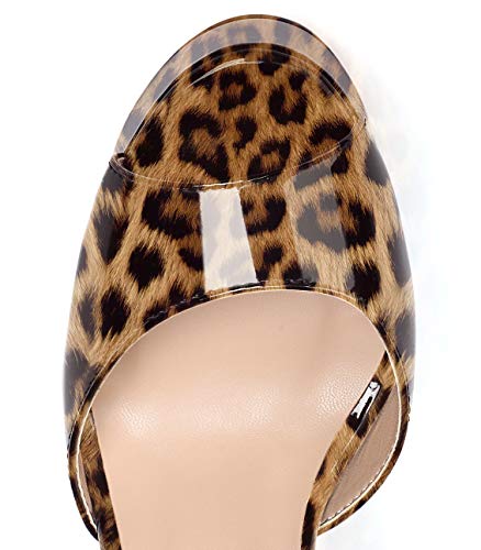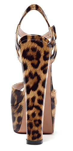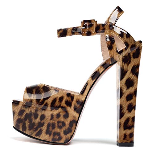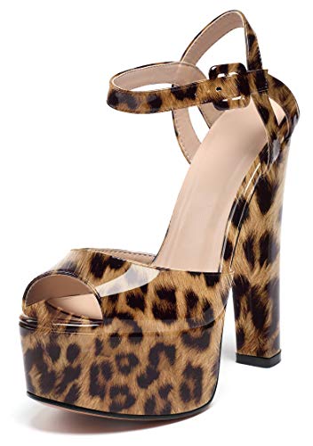 Sammitop Women's Platform Chunky High Heels Ankle Strap Sexy Sandals Peep Toe Wedding Party Prom Dress Shoes for Women Bride Leopard US5