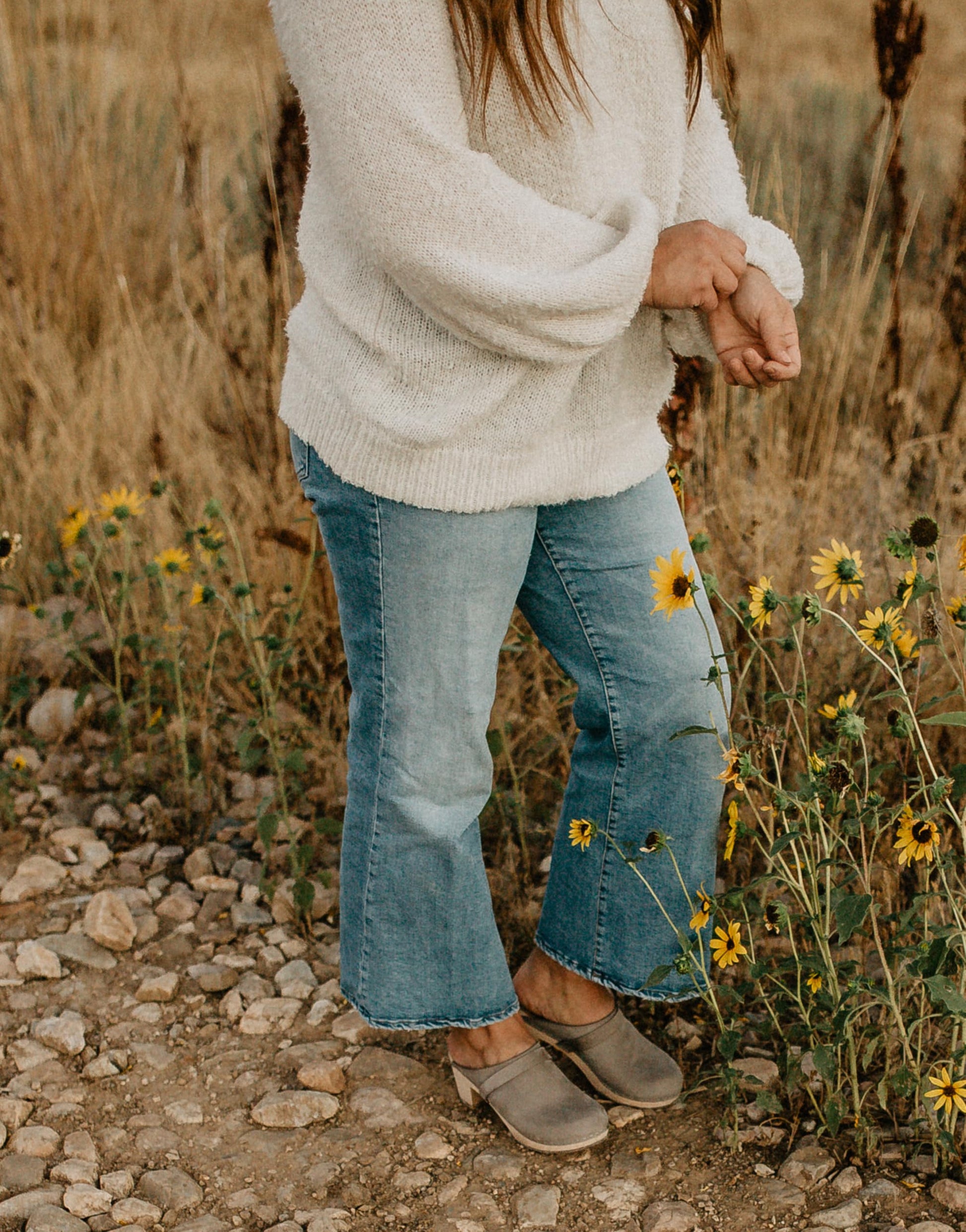 Sandgrens Handmade Swedish Wood Clogs for Women, High Heel Mule US 6 | Dublin Stone Nubuck LT, EU 37