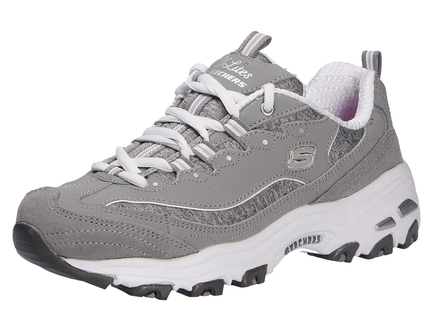 Skechers Women's D'Lites - Me Time Lace Up Fashion Sneakers, Grey / White, 8