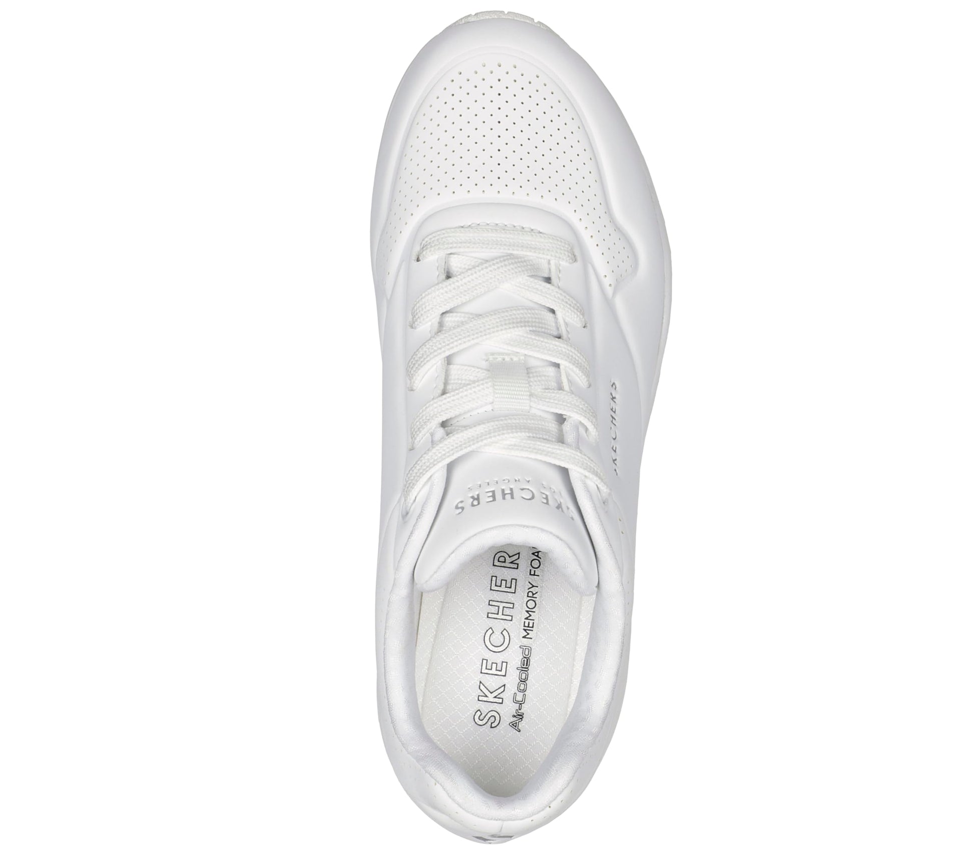 Classic air-cushioned comfort gets a fresh update in Skechers Street™ Uno - Stand on Air. This lace-up fashion style features a smooth perforated synthetic upper with an Air-Cooled Memory Foam insole, and a Skech-Air visible air-cushioned midsole.