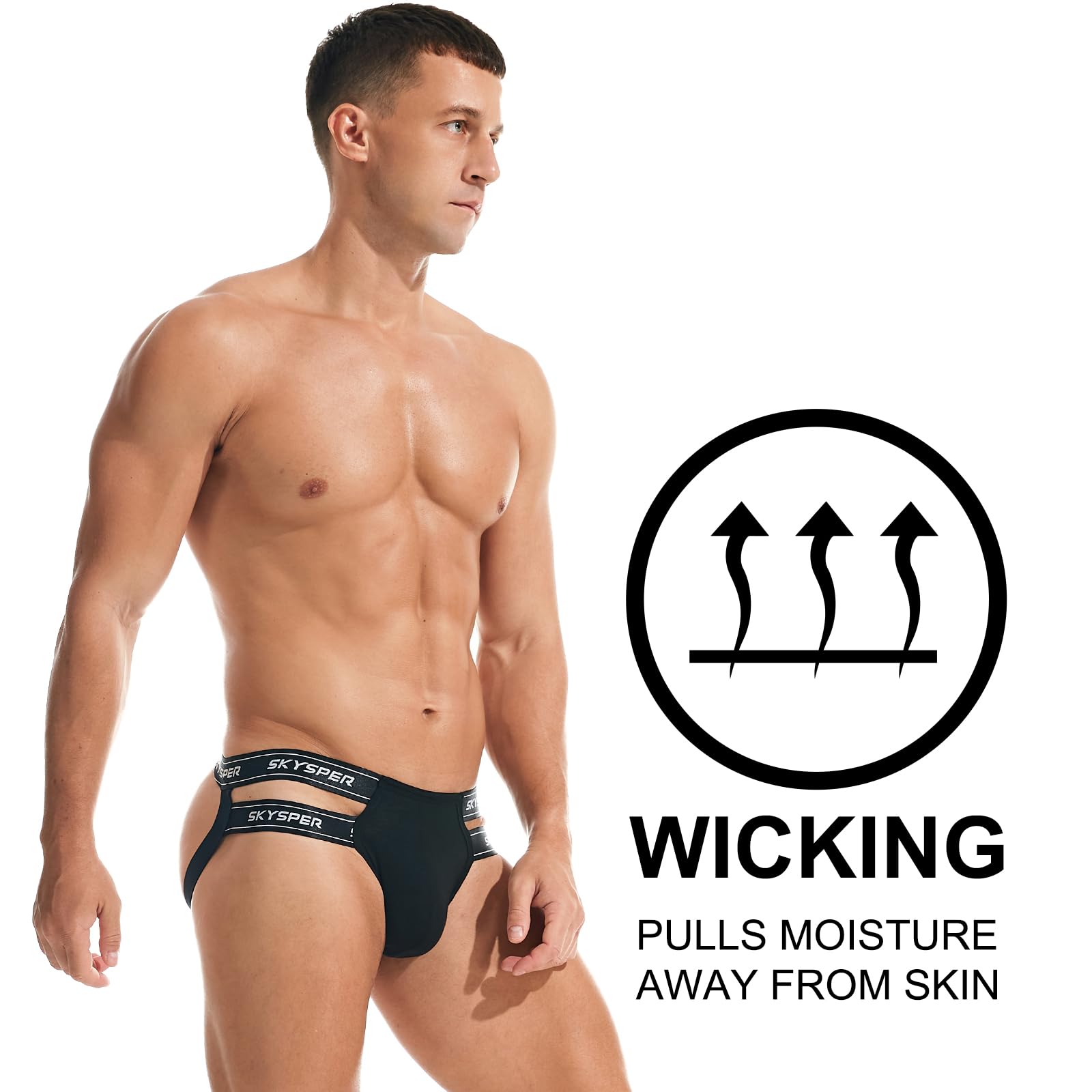 - Breathable Men's Jockstrap Underwear - SKYSPER jockstraps are made of soft/non irritating cotton and stretch elastic waistband, which has excellent moisture wicking function and keeps you cool and dry all day.