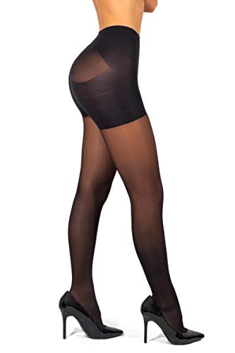 sofsy High Waisted Slimming Tights For Women - Shaping Semi Sheer Pantyhose | 30 Den [Made in Italy] Black 3 - Medium