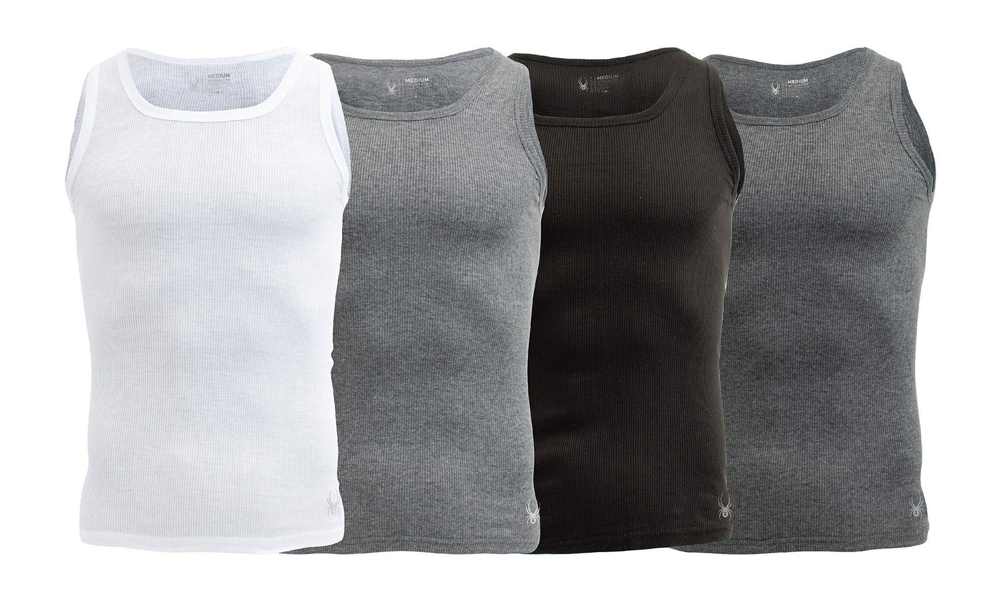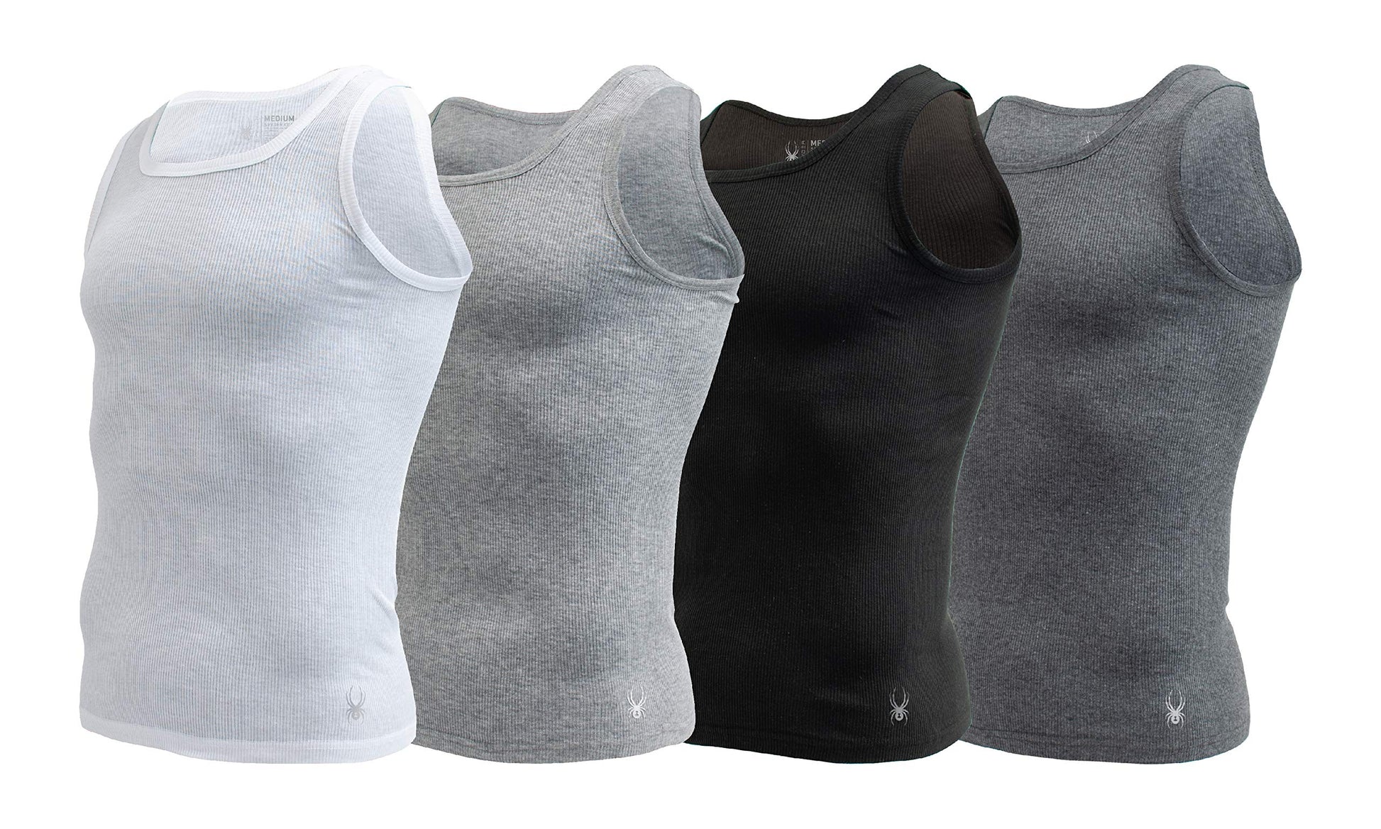 Details: SPYDER Mens Tank top A-Shirts (undershirts) are Designed to Maximize your freedom of movement and constructed with our ultra soft, Cotton/Poly fabric. Our comfortable fit combined with our amazing soft fabric makes Spyder Tank Tops the Perfect Shirt for your Everyday Style. SPYDER- Function/Technology/Fashion Cool and Comfortable fit Pull On closure Contour Fit So you look Great all day Tag-less Smooth Stitching For All Day Comfort Light Weight 60% Cotton/40% Polyester Actual Size Chart Chest Size: Small 32-34, Medium 36-38, Large 40-42, X-Large 44-46