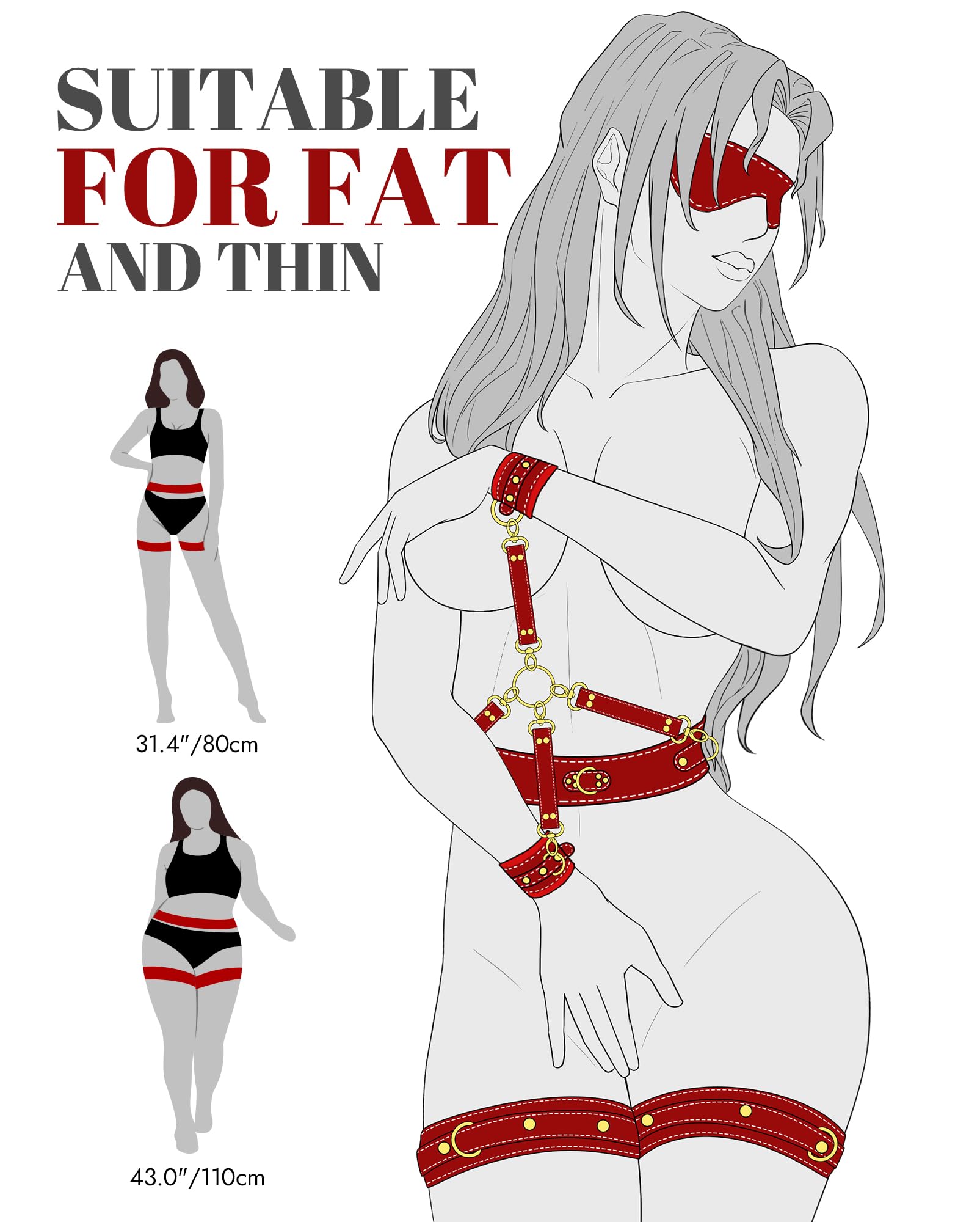 • Mehr Möglichkeiten für Sexspiele 6PCS - Dieses Sex Bondage Kit besteht aus insgesamt 6 Accessoires (1x Taillengürtel, 2x Handschellen, 2x Fußfesseln, 2X Oberschenkelmanschetten, 1x Augenbinde, 1x Kreuzgurt)leichte weiche sexy Augenklappe, diese Paare Sex Set sind einstellbar, so dass es fast alle Menschen Größe passen.aus hochwertigem Leder und Nylon-Material, sicher und bequem.