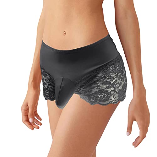 Walang Lip Men's Lace Briefs Sissy Pouch Underwear Breathable Stretch Panties Large Hip Wrap with Translucent Thighs (Black)