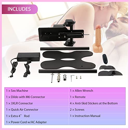 - EASY-TO-USE & DISCREET SHIPPING: This customizable love machine is easy to assemble and quick to adjust with no tools required and includes an 8.7" realistic silicone dildo to get you started. Your new fuck machine arrives in discreet packaging with no revealing information shown. (Note: For smooth & pleasurable experience, we kindly advise lubricating the joint where the thrusting rod meets to the main body of our sex machine.)